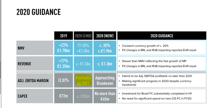 Na ja, ich muss den Bericht erst noch genauer durchgehen. Insgesamt ist der Umsatz schon leicht enttäuschend, aber auch nicht unerwartet. Die drei angesprochenen Punkte haben in Q2 halt voll reingehauen. Für Kurse +über 7 € wird es kurzfristig wohl nicht reichen. Alles bei 5 € halte ich aber weiter für klare Kaufkurse. Entspricht einem EV von 750 Mio €. Das ist nach wie vor sehr günstig, wenn man die Entwicklung der Bruttomarge betrachtet und diese Übergangsphase mit der Umstellung zum Marketplacemodell und dem schwachen Corona-April bedenkt. Unter 5 € bin ich in jedem Fall wieder auf der Kaufseite.