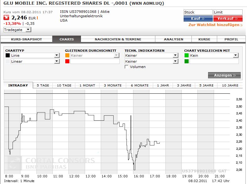 was fur eine verarschung, tiefes stopp limit in usa und nun stehts wieder dort wo ich es auch gekauft habe, weiss nicht, ich hab kein glück mit wertpapieren, irgendwie kommt es mir so vor wie ob die börse die größte abzocke wäre, das passiert mir jetzt zum 3ten mal mit den stop limits in einen halben jahr, was soll man als kleinanleger davon halten, fühlt sich an als ob jemand einen verarscht