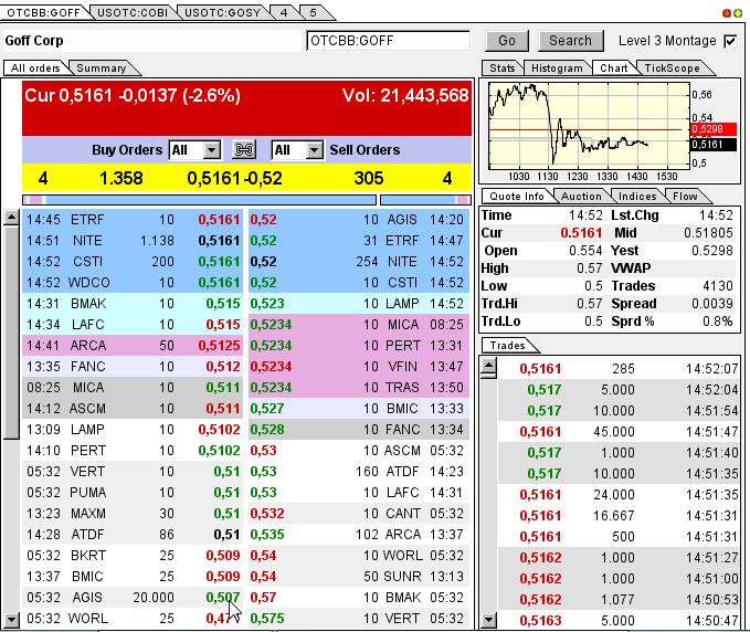 Goff Corporation is a U.S.-based public company. Its wholly owned subsidiary, Golden Glory Resources S.A. is engaged in gold exploration with a view to developing highly prospective gold projects. The Company's primary interest is the LGC15011 or "La Frontera" Gold Project in Aguadas, Dept. Of Caldas, Colombia. The project is being assessed for its potential as a low-grade, large bulk tonnage gold and silver prospect. Colombia is currently one of the leading gold mining areas in the world producing over 55,509 kilograms of gold (2011), primarily from the region where Goff's subsidiary Golden Glory Resources holds leases on the La Frontera Property.