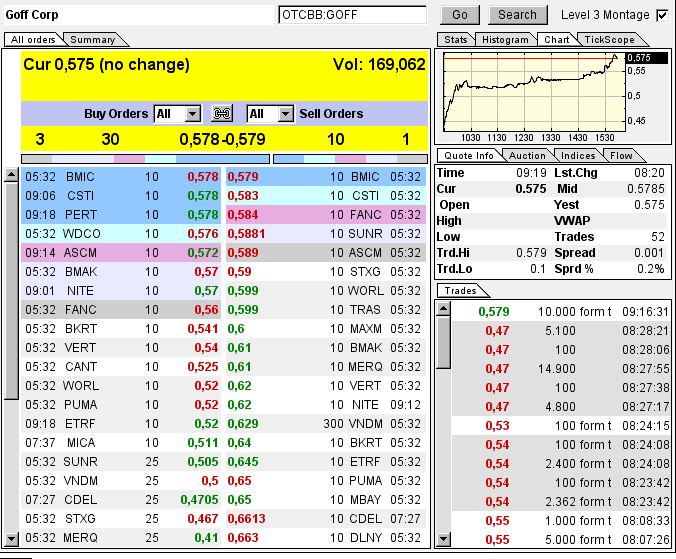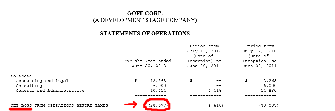 Die Goff Corp ist im Moment mit 129 Millionen USD an der Börse bewertet. Der gesamte Umsatz im letztem Jahr betrug laut 10k nur knappe 30.000 USD. 30.000 USD Verlust selbstverständlich!
