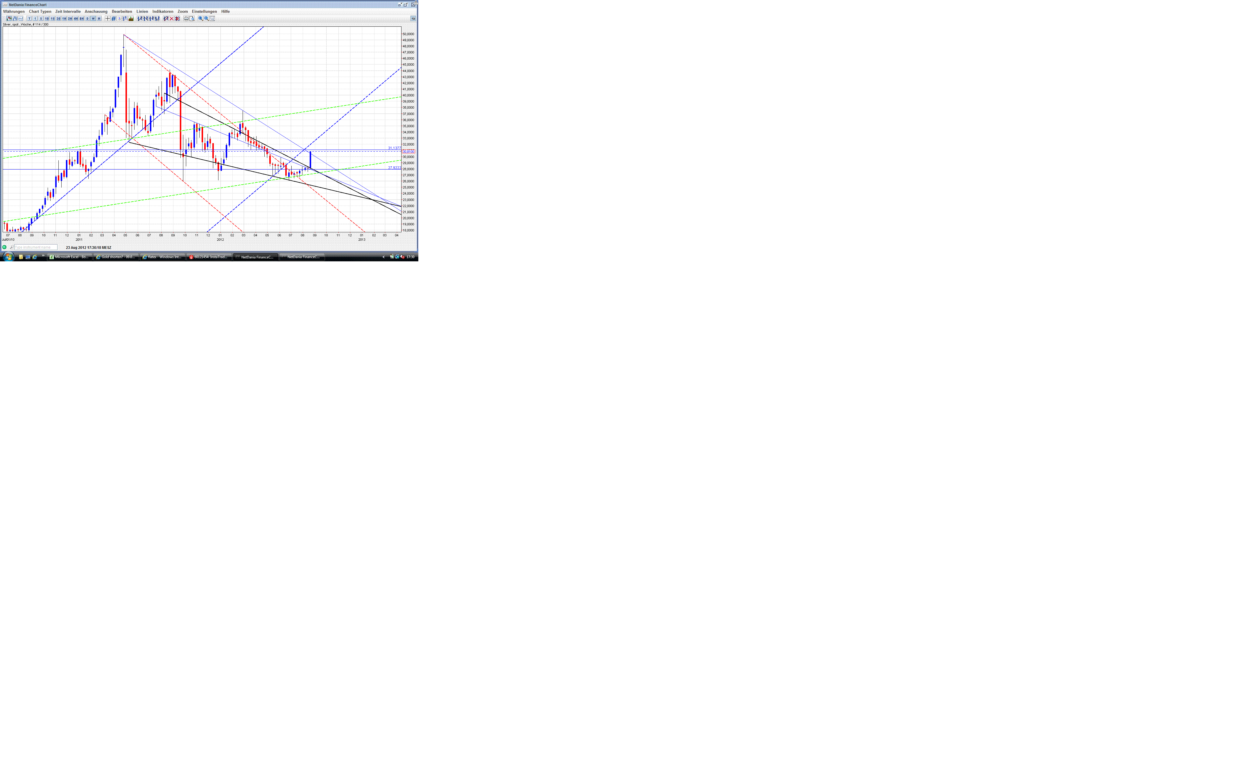 Die Abweichung war jetzt nicht unbedingt riesig, aber trotzdem tendenziell gut für den Gold-Preis, da Heli-Ben der Entwicklung des US-Arbeitsmarktes eine besonders hohe Aufmerksamkeit schenkt, wenn es darum geht seine Geldpolitik eventuell weiter zu lockern. Von daher könnte ein schwächerer Arbeitsmarkt am Ende vielleicht den letzten Ausschlag geben die gestern im FED Protokol genannten Maßnahmen zumindest teilweise in absehbarer Zeit auch umzusetzen. Das Zentralbanker-Treffen in Jackson Hole Ende August wird sicher das zum Thema haben. Mehr Liquidität würde wieder mehr Inflationsgefahr bedeuten, d.h. mehr "Flucht" in Gold als Wertkonservierer. Gleichzeitig "droht" ja noch Draghi demnächst seine Liquiditäts-Bazooka abzufeuern. Es könnte also vor zwei Seiten der Goldpreis in den kommenden Wochen weiter angetrieben werden.