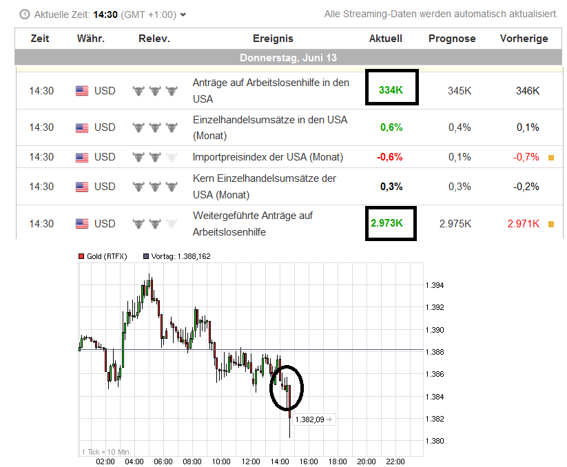 etwas langweiliger Tag bislang beim Gold. Man macht die letzten Stunden nur das Gezucke vom €/$ nach. Wäre mal wieder Zeit für neue Impulse aus den USA. Schauen wir mal wie man die Daten am Nachmittag aufnimmt. Da wäre ja z.B. wieder die Anträge auf Arbeitslosenhilfe. Sind ein Zwischensignal wie es um den Arbeitsmarkt steht, was wiederum die FED beeinflußt.
