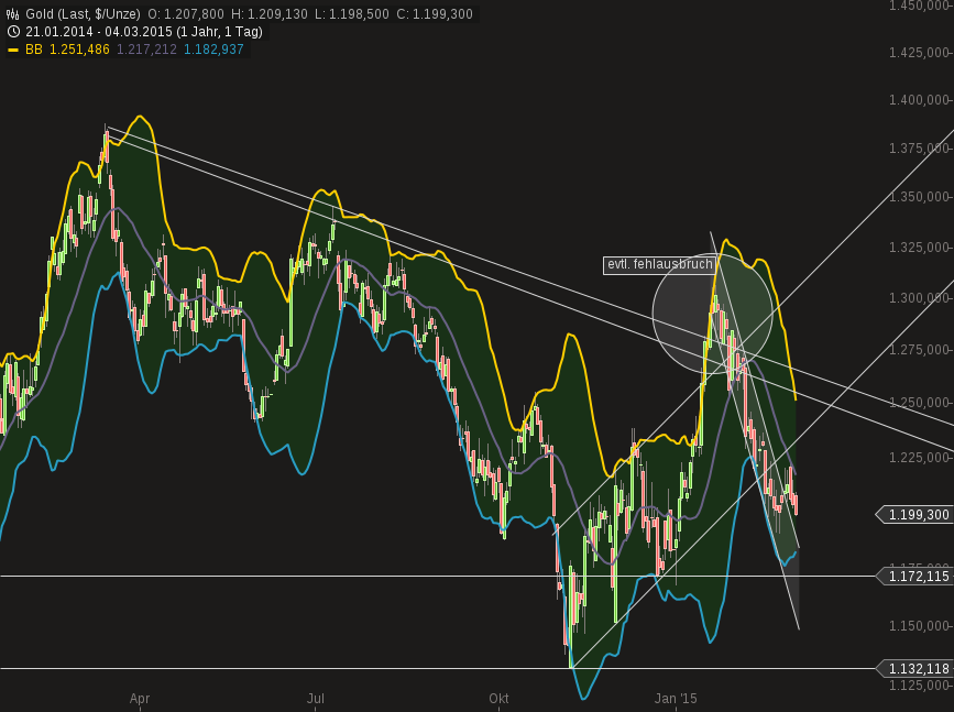 Grob betrachtet bewegt sich der Preis um die 1.200$, Plus / Minus 70$, in einem "relativ" sanften Seitwärtstrend. Der ist allerdings für Trader immer noch sehr interessant.
