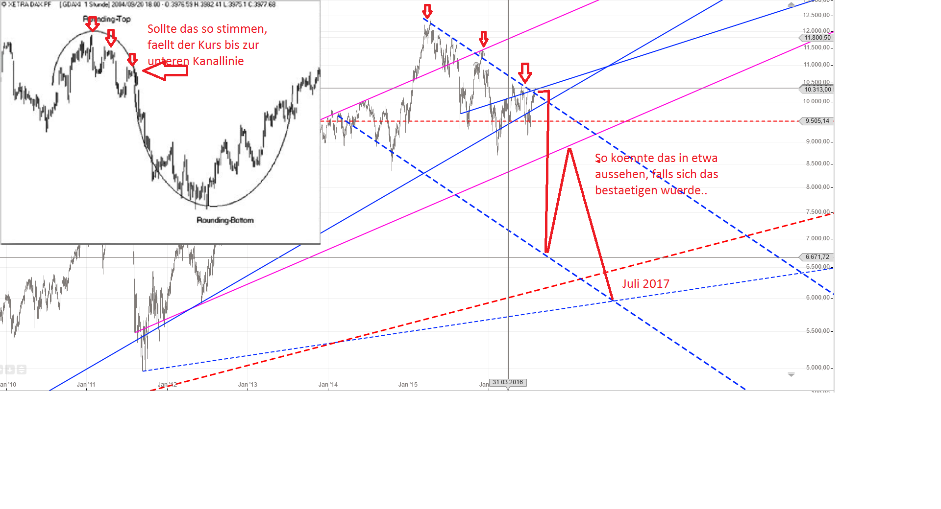 Raten und hoffen zaehlt nicht an der Boerse. Boerse ist ein knallhartes Geschaeft. Ich habe bis jetzt von dir noch kein Chart gesehen. Man spuert foermlich, das du verunsichert bist. Ich weiss, so geht es vielen hier. Du hast vergangene Tage einen Chart gezeigt(auch wenn es nicht Deiner war), warum haelst Du Dich nicht daran? Wenn du mal hier bei Ariva in den Threads reinschaust, hat jeder seine eigene Meinung. Verlasse Dich nicht darauf. Hast du einmal ein Setup fuer dich gefunden wodrauf Du Dich verlassen kannst, wirst Du ruhiger werden. Bis noch vor kurzen, war ich auch so. Bin irgendwo eingestiegen und wenn es dann gegen mich lief, war ich total hektisch. Habe dann einen Fehler nach dem anderen gemacht. Mittlerweile arbeite ich 3 Jahre an meinem Konzept. Auch wenn ich mein Muster soweit stehen habe, mache ich immernoch Fehler. Nicht weil meine Charts nicht stimmen, sonder mein Vertrauen an meinen eigenen Charts zum Teil fehlt. Habe zB im Moment tierischen respekt vor einen Long einstieg. Auch wenn es dazu kommt, dass es ein Longsignal gibt, muss ich mich ueberwinden dann auch in einem long einzusteigen. Ich werde es machen, wenn das passiert, was ich oben geschrieben habe, aber du kannst davon ausgehen, dass ich keine Posi ueber Nacht halte und tagsueber nur mit einen Stopp arbeite. Richtung sueden kann das so schnell gehen, dass Du ohne Stopp richtig auf die Nase fallen kannst.