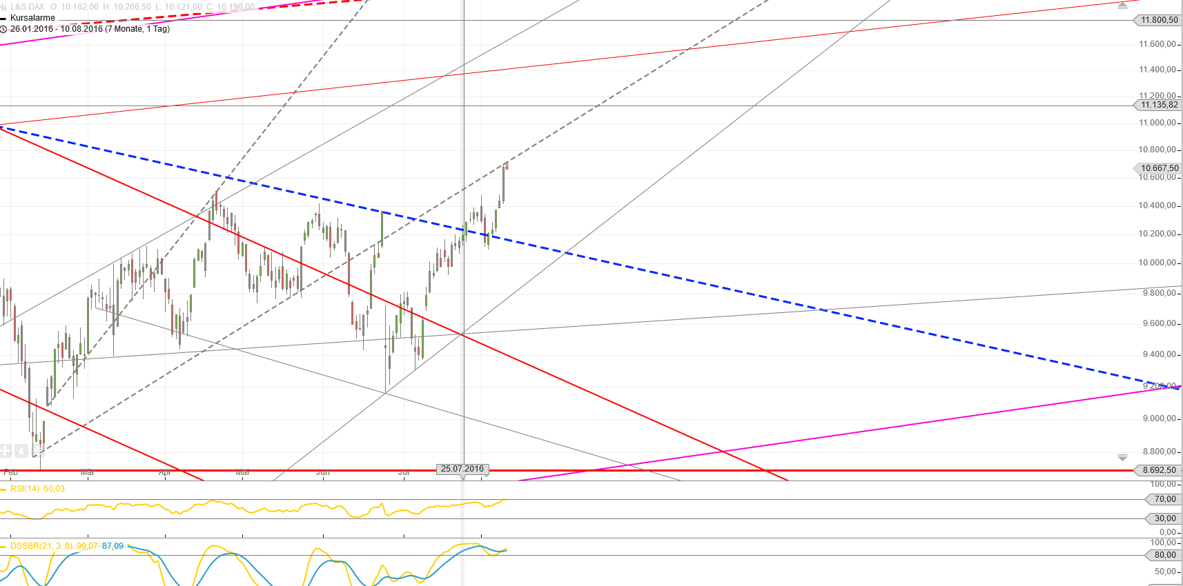 Hallo Robbi, ich bewundere Dich für Deine Arbeit, Du kannst etwas, was ich nicht kann und zwar kurzfristige Trends vorhersagen, da ist es schon einfacher langfristige Trends zu erkennen, warum ist das so? weil da die langsamlaufenden Planeten den Ton angeben und man daher länger Zeit hat einen Trend zu fixieren.Wenn mans genau wissen will, braucht man eine Statistik bzw,Erfahrung über Jahrzehnte hinweg, ich habe sie nicht , daher lehne ich mich lieber nicht aus dem Fenster hinaus.