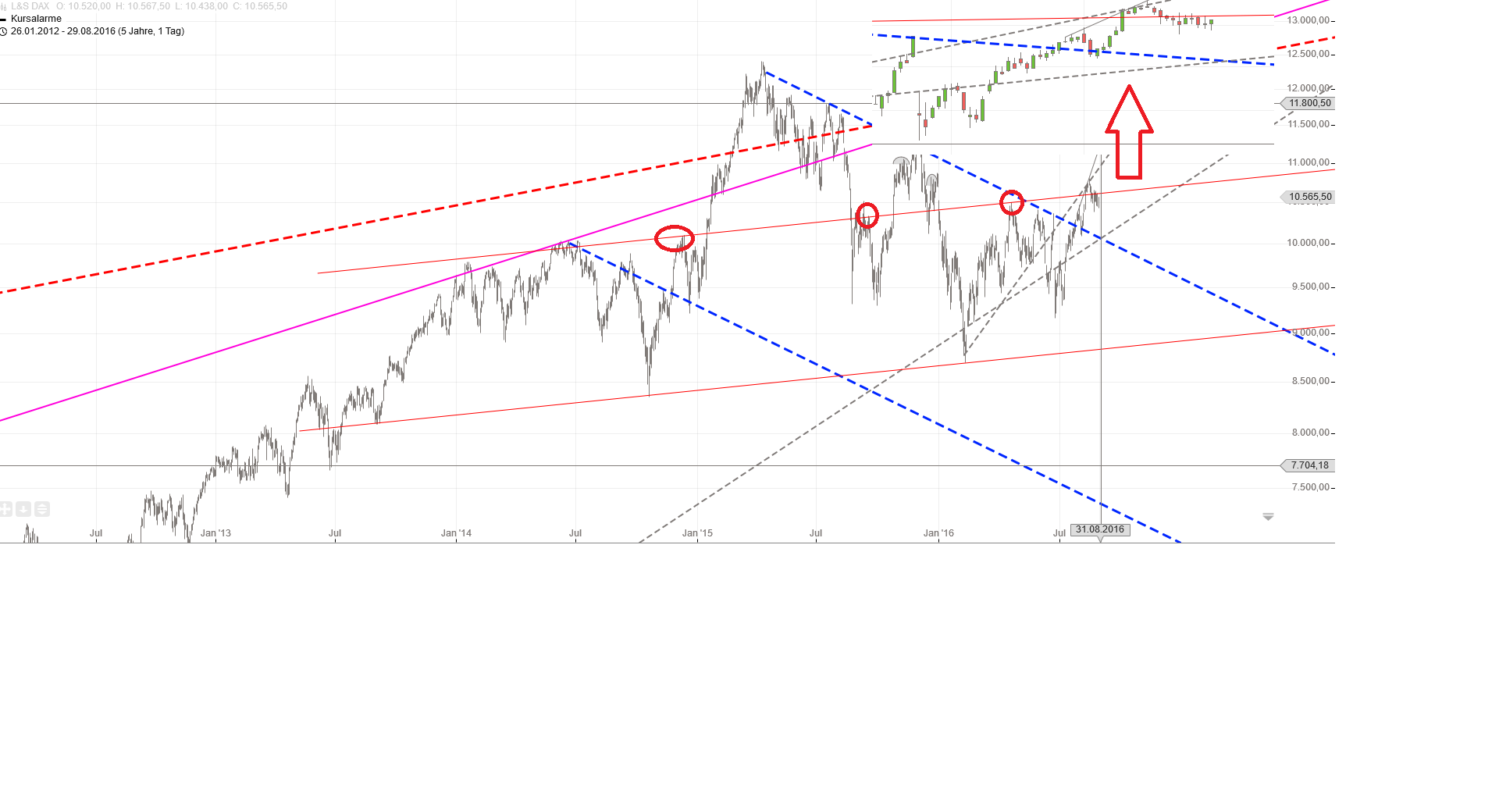 Wenn ich von einem 14 Tagerhyrhmus ausgehe ab.1.9. wie schon bemerkt ist Ende Sept.zu achten, wenn Mars auf das Quadrat zu Jupiter zulaufen wird. Ich denke, daß sich da die Linien ,obere schwarze mit der roten. Kreuzen werden. Komme darauf zurück.