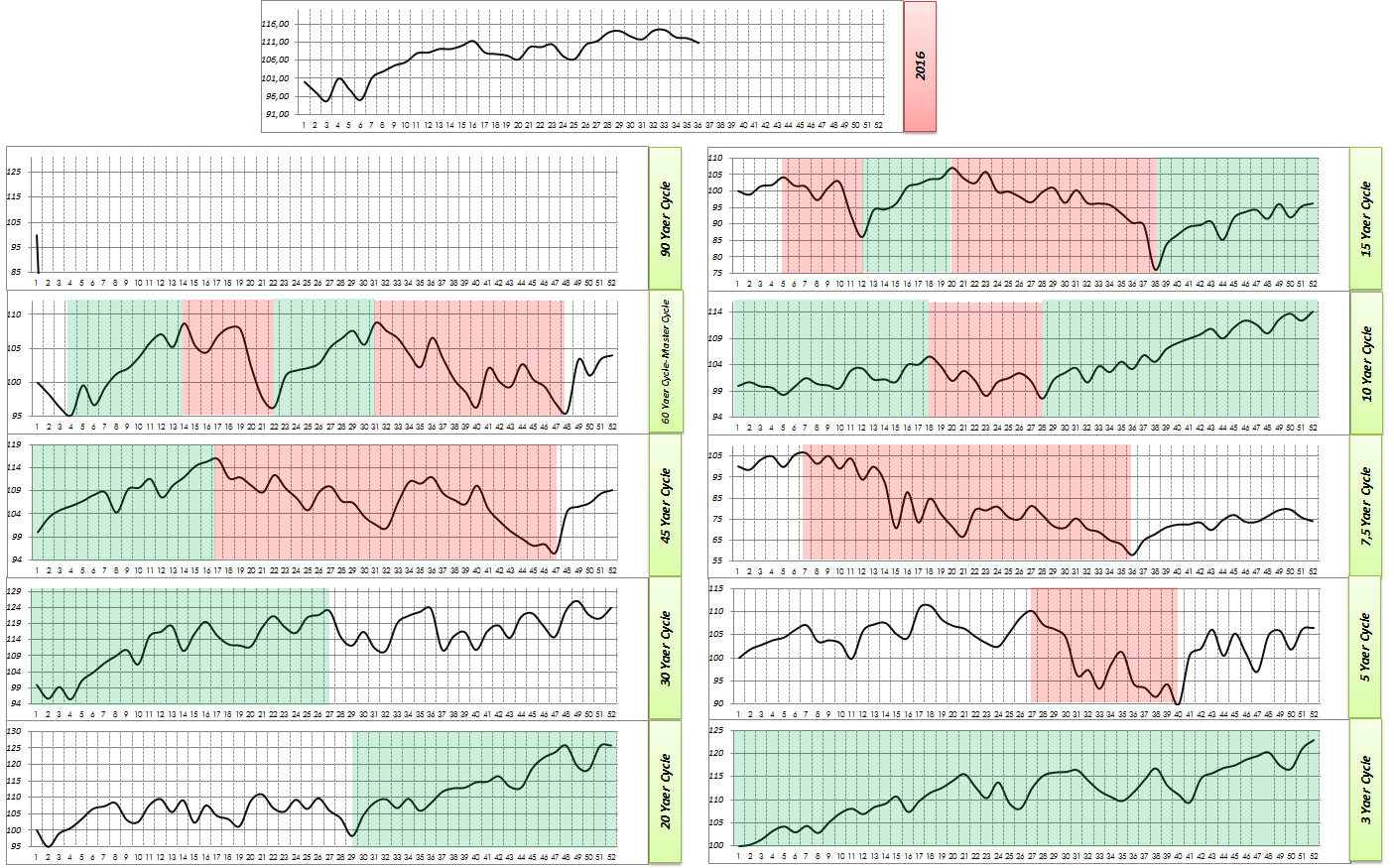 Dazu kommt, dass ich den 90 Jahre Zyklus nicht kenne, bzw. nicht genau kenne. Ich weiß nur, dass dieser bis 2019 steigt, genau so wie 60er. Zusammen werden beide vermutlich, nach einer Bullencompagne, einen Doppeltop in 2016 bilden, weil das die großen Zyklen sind und diese "Hauptschussrichtung" vorgeben.