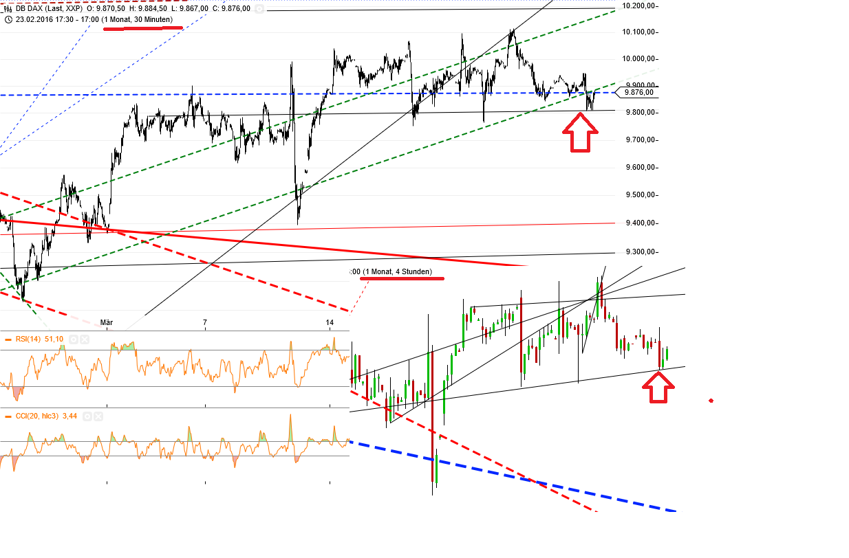 Entscheiden wird sich das bei ca 9884Pkt. Sollten die nach oben (im Moment einmal abgeprallt) verlassen werden, ist wenigstens die obere Grüne ein neues Ziel. Wenn nicht sehe ich die 8200 in naher Ferne.