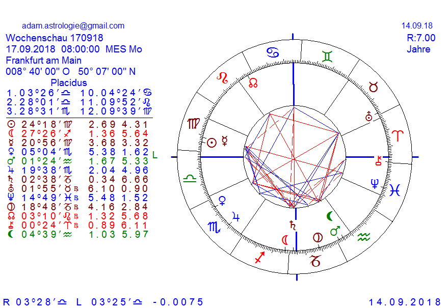 wir haben es die ersten Tage mit einem MA Quadr UR zu tun, wobei der UR der Herr über MA ist, die VE über UR und die untersteht wieder dem MA, heisst der MA gibt das Tempo vor und kurzfriste spontane Veränderungen in der Finanz und Geopolitik wirken sich auf die Kurse aus, zusätzlich läuft der MO auf SA, sodass jemand aufs Gas steigt und zugleich bremst, das kann nur für Verwirrung sorgen, ich sag mal in Blickrichtung des kommenden SO/SA Quadr in 10 Tg auch Bedenken und Ängste, daher rechne ich diese Woche mit keinen Anstieg der Kurse bestenfalls seitwärts oder ein rauf runter, wobei wir uns die MO Aspekte separat noch genauer in Folge ansehen werden
