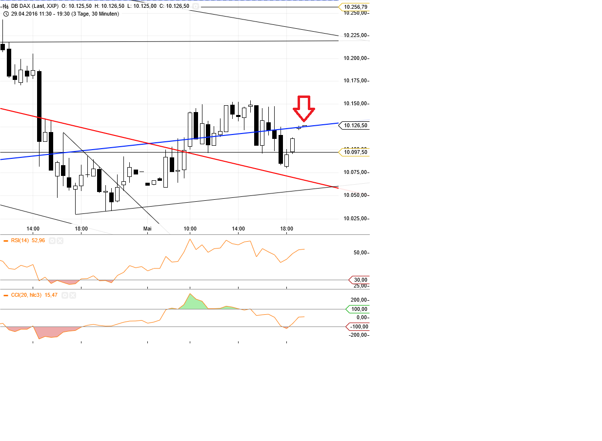 ..ich mit Weichen. Jede einzelne hat etwas zu bedeuten. Leider habe ich die andern Linie bereits gelöscht, so das ich euch den genauen Weg, den der Dax gegangen ist, nicht mehr zeigen kann. Wie ich schon geschrieben habe, ist in dem Chart (nicht Daily sondern 4Std) noch eine dazu gekommen. Nach meiner Technik wird der Dax nochmal über das ganze Paket steigen bis zur roten Linie. Jeder, wenn es so kommt, sollte dann wenigstens seinen Stopp nachziehen. Fällt der Dax dann gilt es dabei zu sein. Natürlich kann ich mich Irren, aber bis jetzt sieht wirklich alles danach aus.