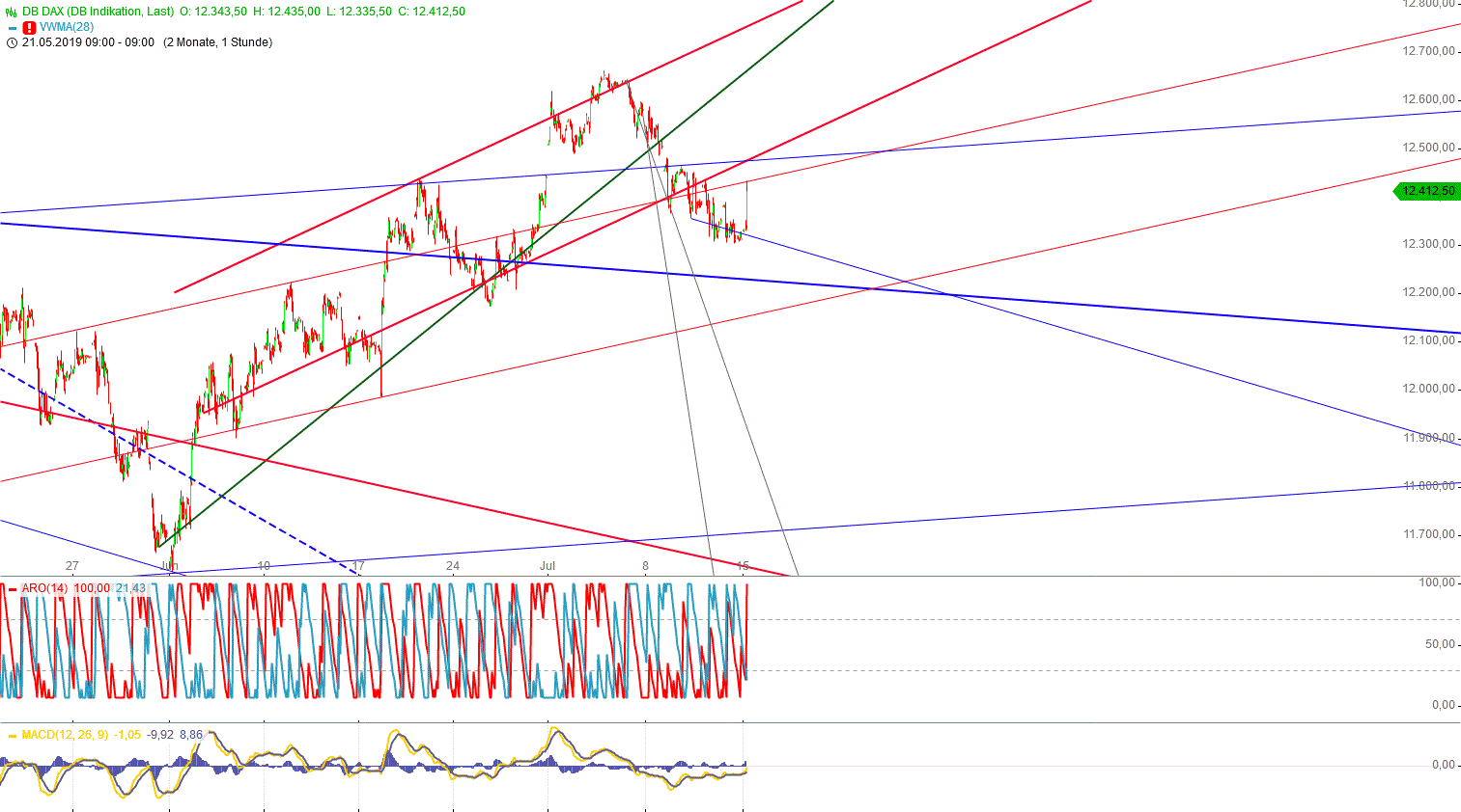 Konstellationen beherrschen dieses Jahr. JUPiter Qzadrat NEptun ( letzter Übergang am 21.Sept.) und Das Sextil Saturns zu NEptun ( letzter Übergang am 9.11.) ersteres bescherte uns am 24.12.18 ein Tief. Leider kann ich mir das gleiche Tief am 21.9. nicht vorstellen. Denn das Sextil Saturns zu NEptun hält das in Schranken: der Psychoanalytiker läßt seinen Patienten mit der Hand auf der Sturn wohlwollend träumen. Da ich mich nicht Rabbi nenne sondern Robbi ( von robben ) , werde ich mir den Weg immer ertasten und erschnüffeln müssen( wobei der Ps A im Schrank versteckt wird ). Da ist es auch für kurze Puts immer so eine Sache. Das werden wir bis zum 18. 7. genauer sehen, ob sich das im Hinblick auf den 23. überhaupt lohnen wird. Denn am 25. sehe ich heute zunächst gut steigende Kurse. Bis demnächst. Die Hitze hier liebe ich nicht. ! Bäume und Pflanzen schreien nach Wasser !