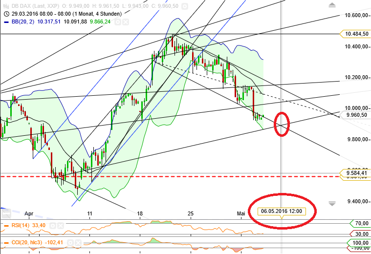 Ich bin nach wie vor guter Dinge. In einem Monat natürlich könnten wir wesentlich tiefer stehen. Als wesentlich hatte ich den 6.Mai genannt. Ich bleibe bei meiner Einschätzung. Wenn ich AKTien kaufe, schaue ich nicht auf 5% rauf oder runter,