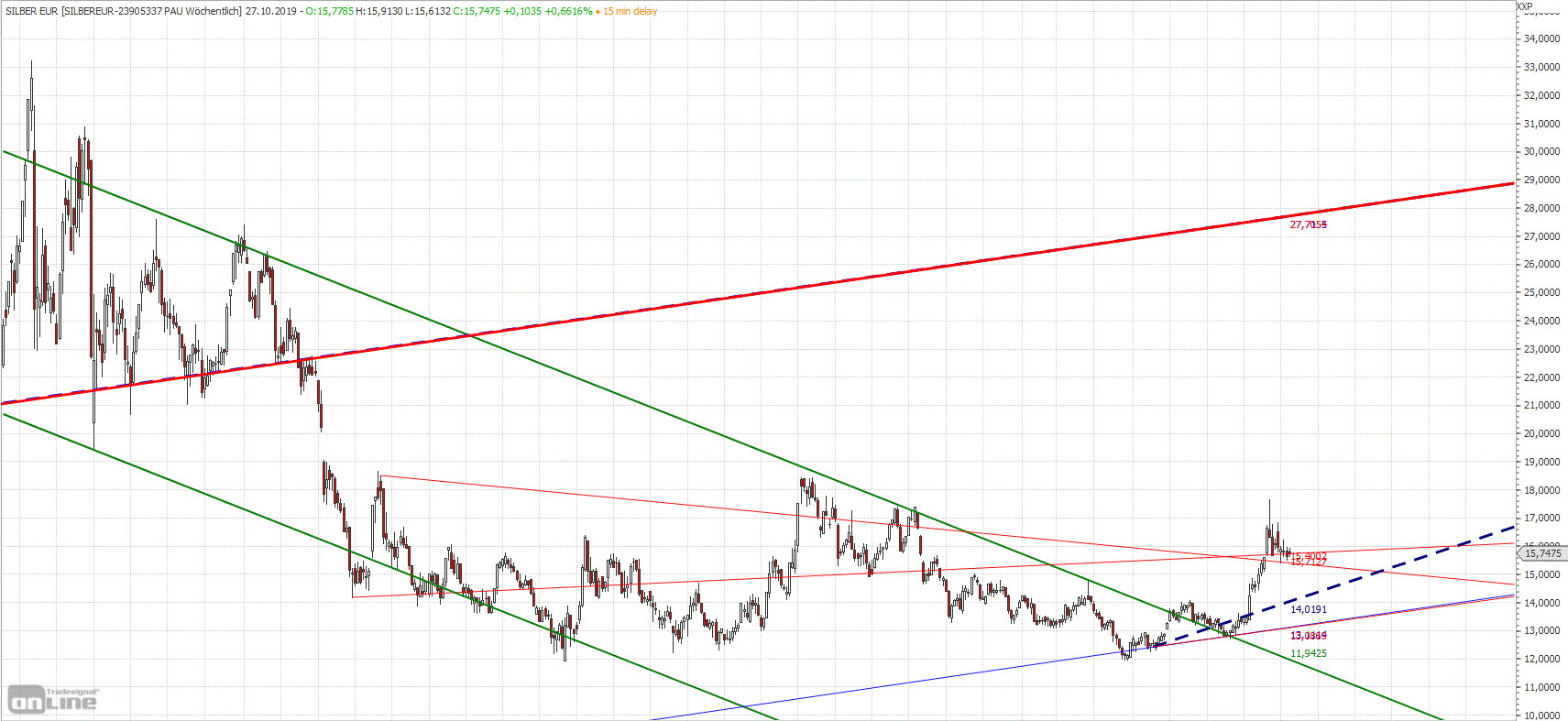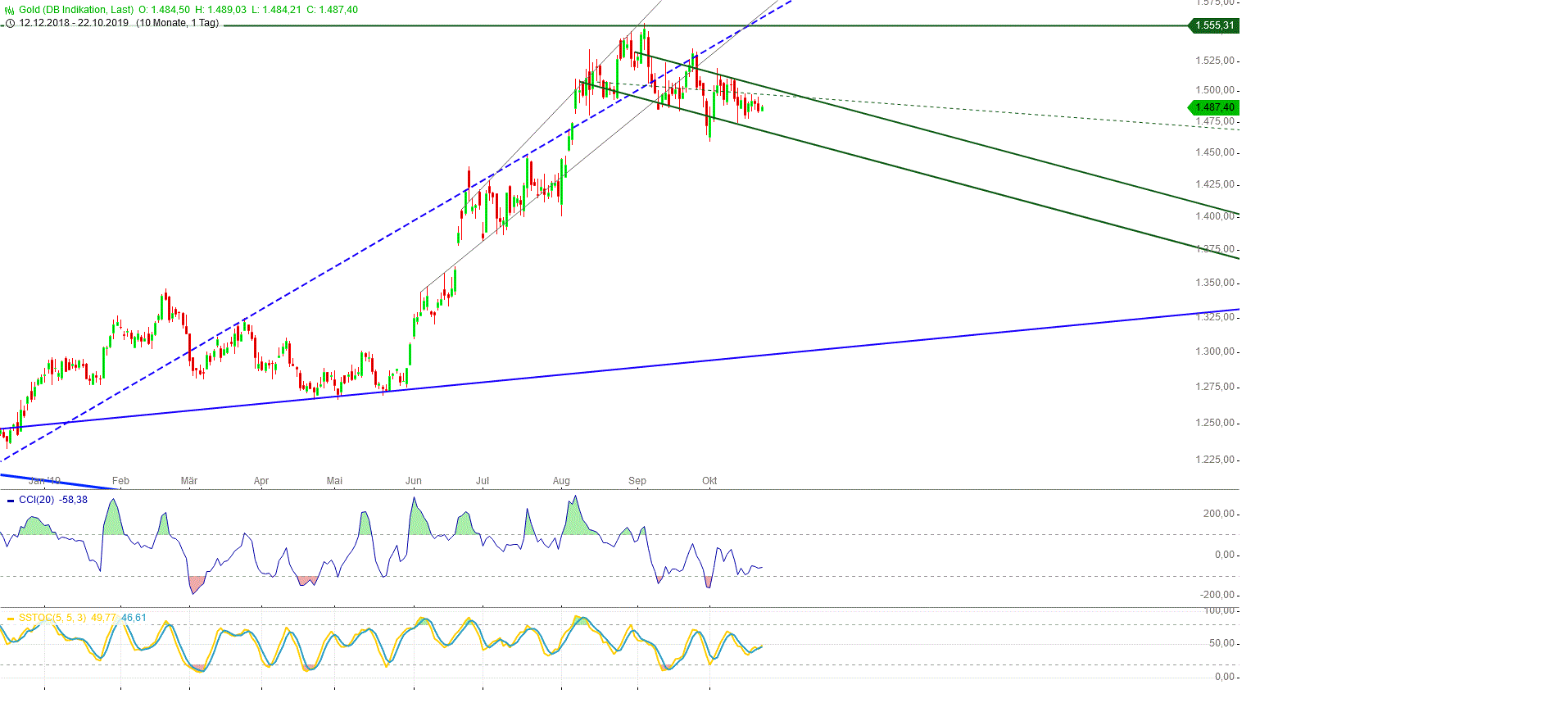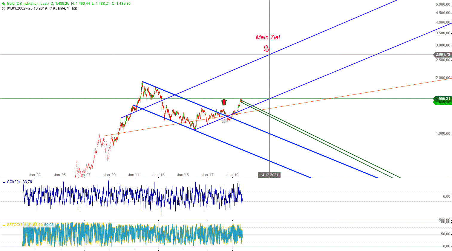 Danach kann es zum Mindestziel 1620 hochgehen, wenn die 1 am 38er RT liegt und die 3 am 76er, wie so oft. Das 161er RT (5er doppelt so lang wie 3) liegt am Allzeithoch bei 1900.
