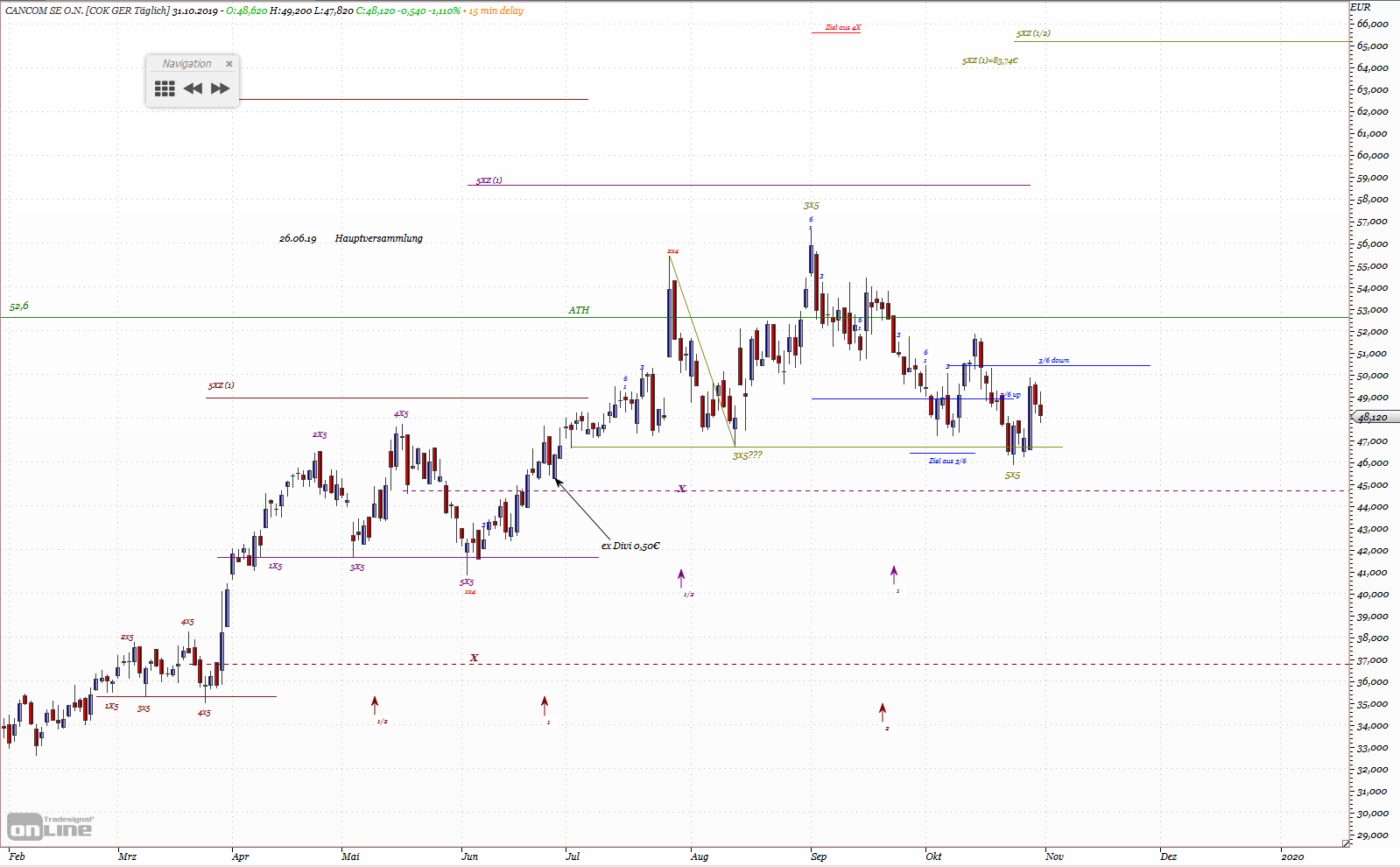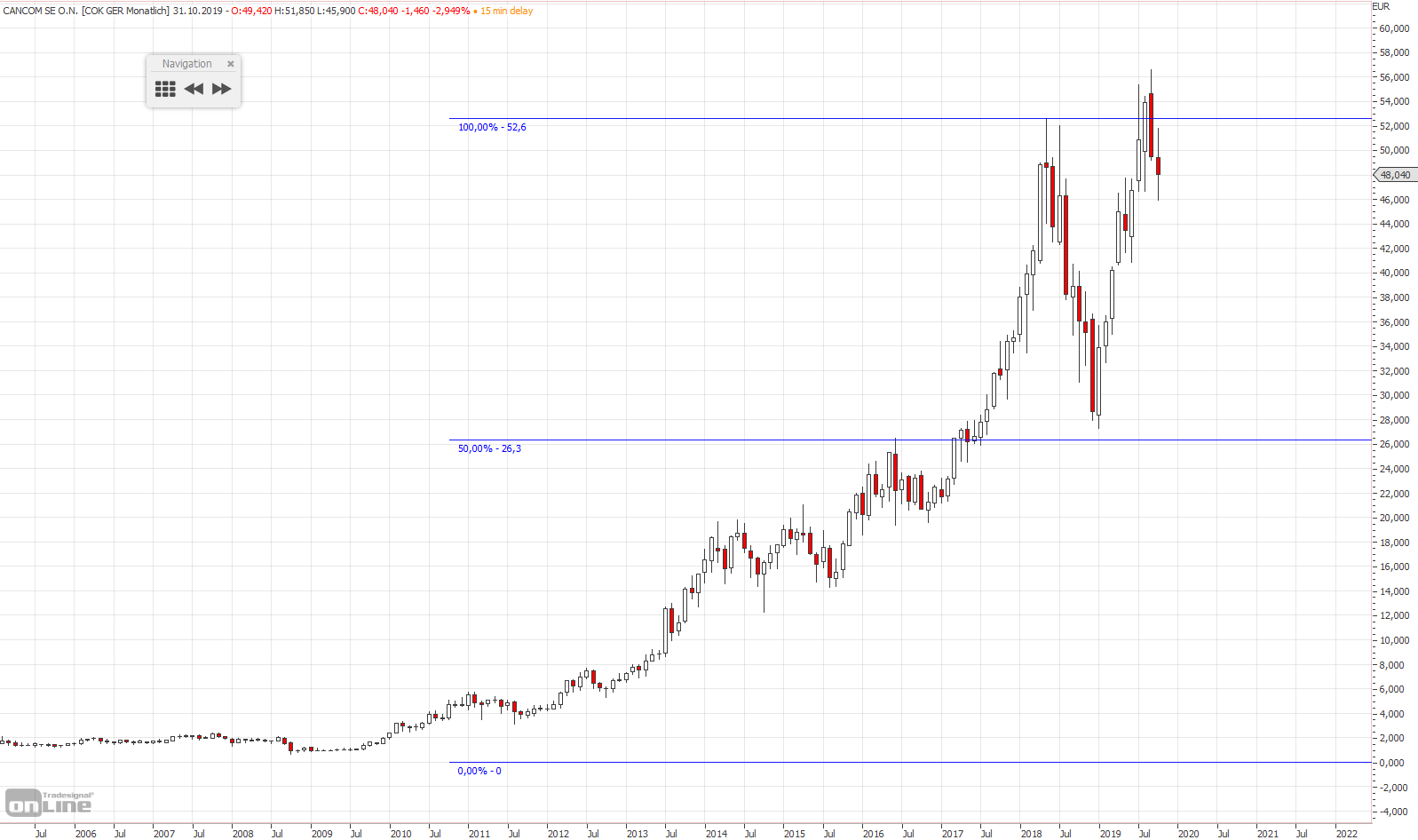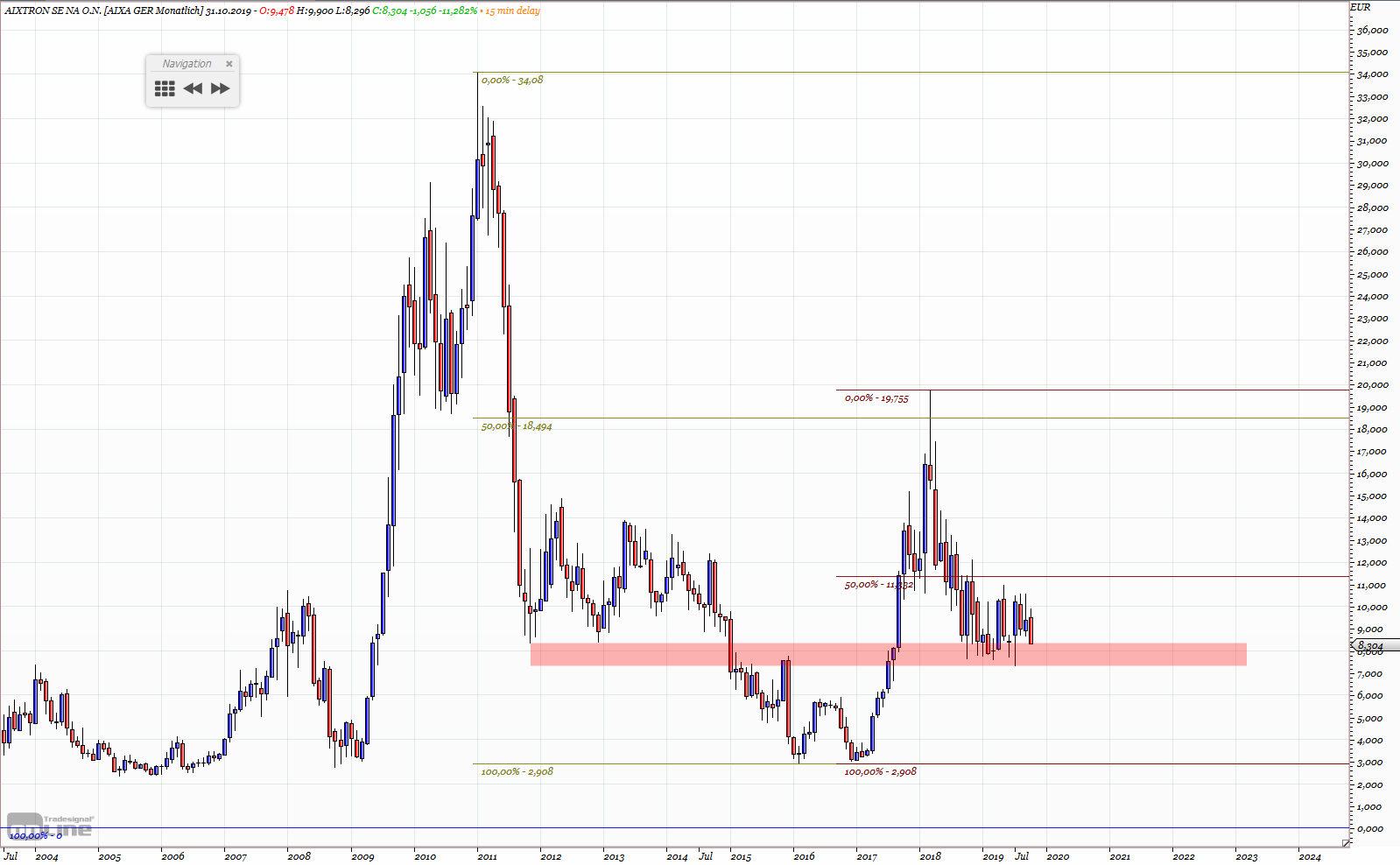 Achte im Monatschart auf die Hälfte zw. ATH und 0 und in der letzten 10 Jahre zw. dem Hoch 2011 und Tief 2016 - auch dort die Hälfte.
