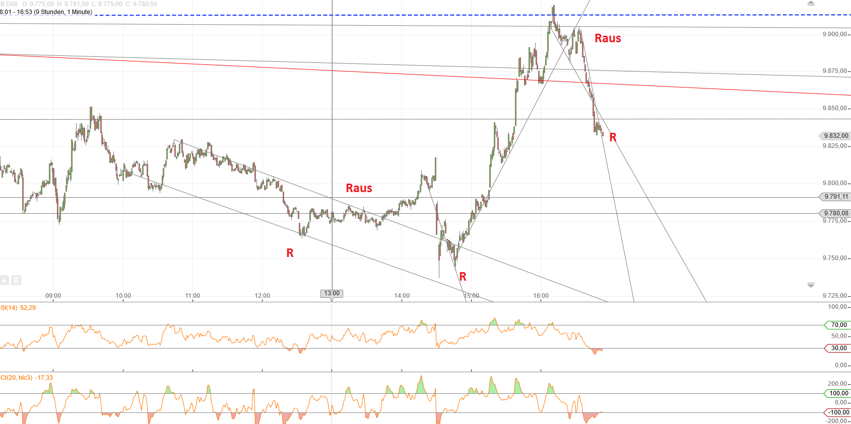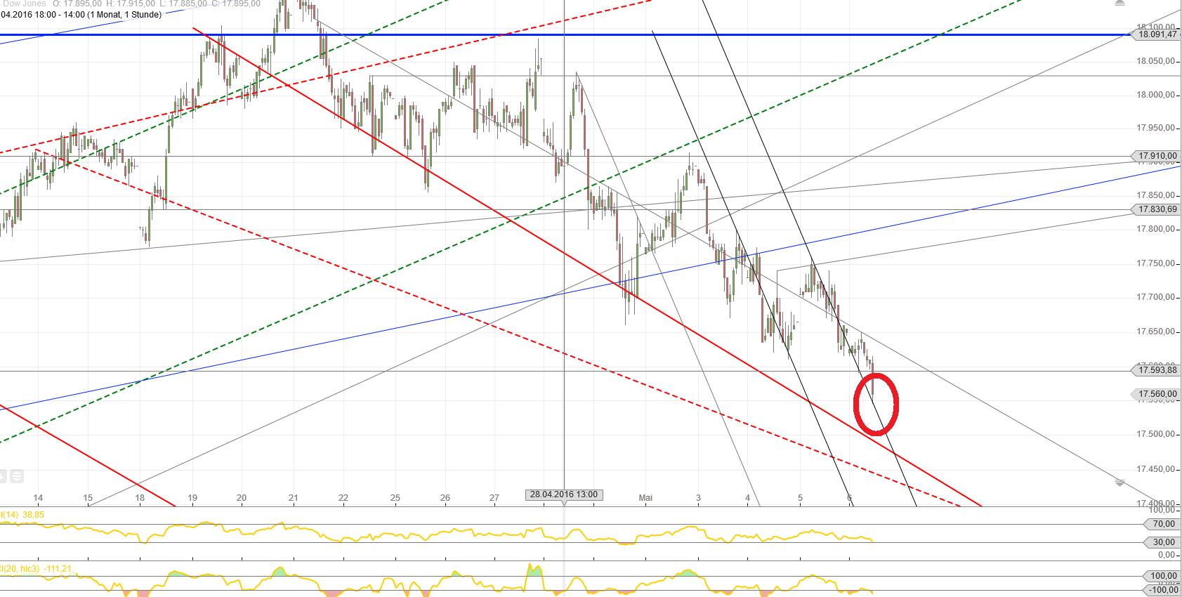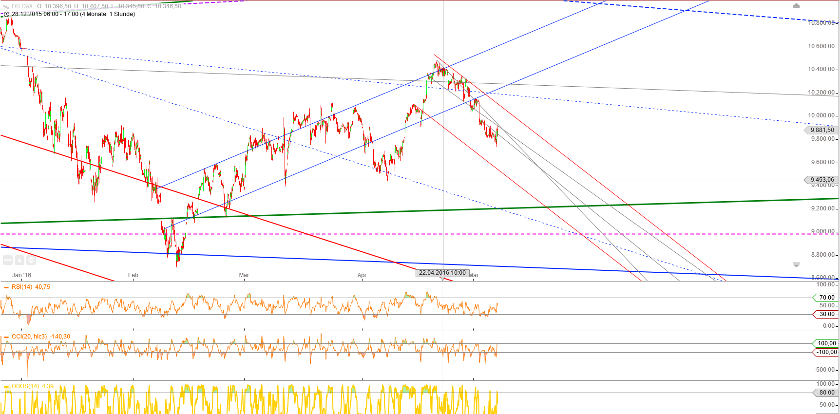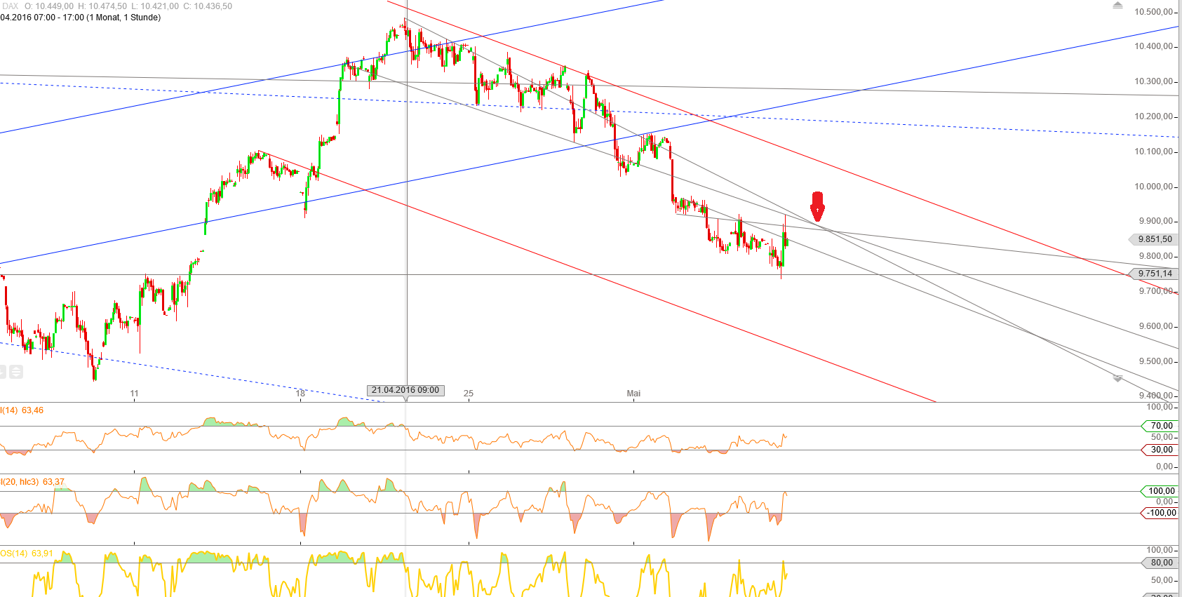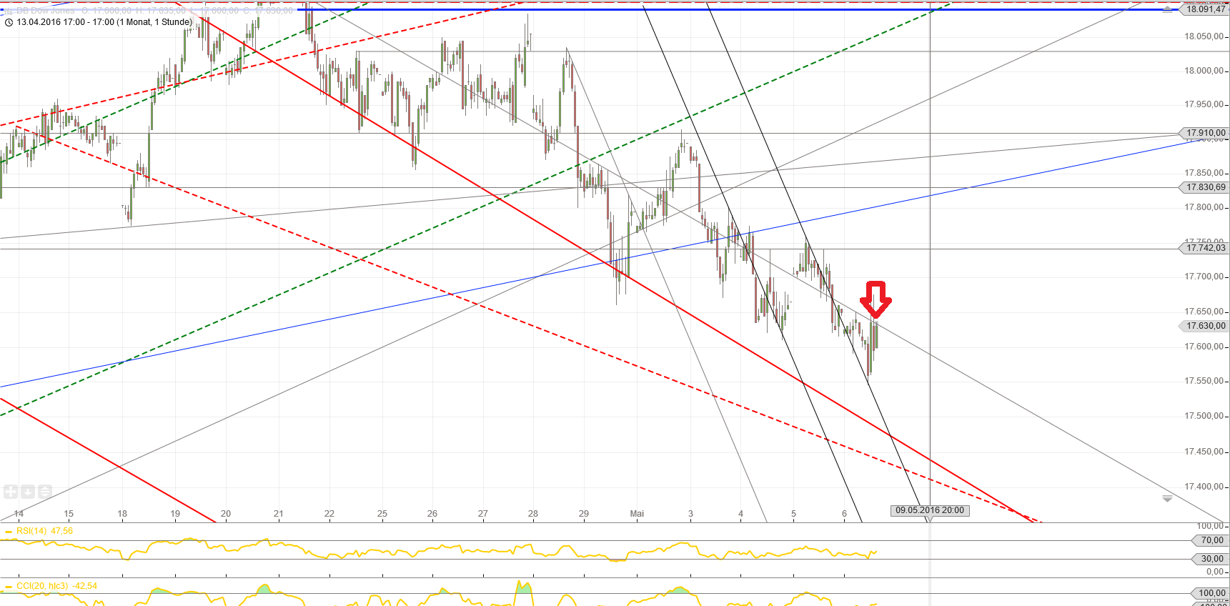 Natürlich ist die RT Vision von Spgre nicht aus der Welt.! ! Aber ich glaube an eine Pause. Das Tief von heute früh sehe ich vorerst nicht wiederkehrend, sondern eher einen Schluck aus dem Sektglas. Ihr könnt ruhig sagen 'selig sind die bekloppten,denn sie brauchen keinen Hammer mehr' , aber ich bin von einem schnellen Anstieg überzeugt aufgrund der Astrolog.Konstellationen. Natürlich wird dieser den übergeordneten Abwärtstrend nicht stürzen, sondern ab Ende Mai geht' s richtig runter. Im Vorfeld der G7 Treffen wird wahrscheinlich Hoffnung geschürt, aber das sind keine astrologischen Argumente.