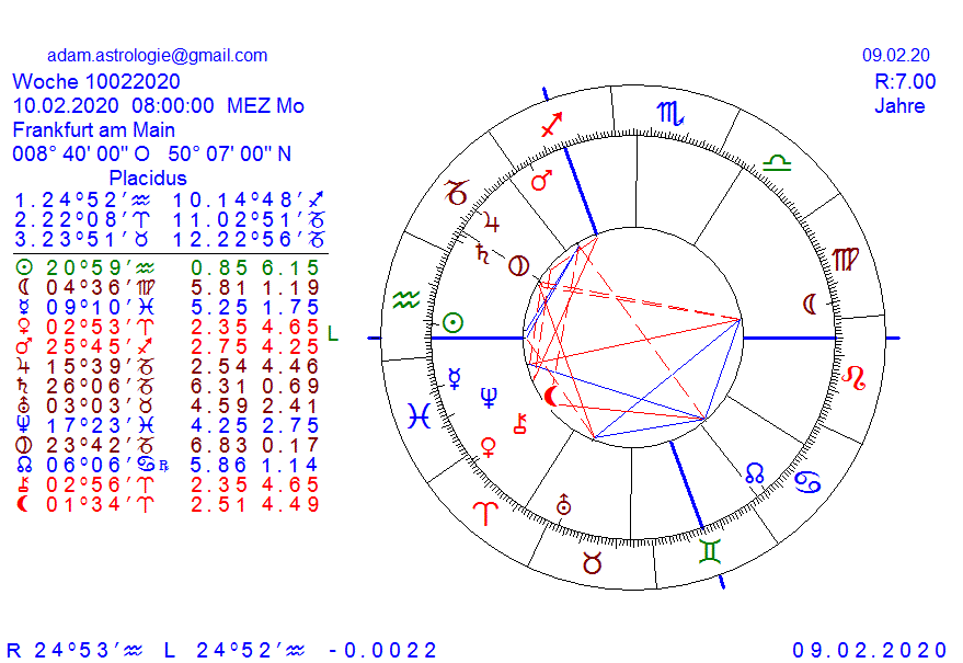 die themen im wochenradix sind klar ersichtlich, 1 haus fische eingeschlossen mit NE und Chiron, so wie lilith, stellvertretend für den virusüberbringer und alles andere unter der leitung von UR in 2., Menschen mit einem solchen radixe geboren zb., leiden meist an einem geburtsfehler oder sind ungewollt von ihren zeugern in die welt gesetzt worden, eine art findelkindersyndrom beherrscht momentan die welt, auch auf die börse, finanz und politik bezogen, mit diesem gefühl starten wir in diese neue woche, viele menschen und anleger fühlen sich momentan nicht wohl in ihrer haut, denn eine Ungewissheit greift sich raum, man kommt sich teilweise wie vom schicksal manipuliert vor, hin bis zur eigenen machtlosigkeit, was ja auch auf die eliten zutrifft, nur scheint es momentan noch kein rezept dagegen zu geben, daher prolongiert man den seinszustand, der aber auch ein kriegszustand ist, egal in geopolitik oder finanz, MA am Zenith schwebt wie ein Damoklesschwert über allem, man erwartet eine veränderung, man erwartet einen crash, es liegt sozusagen etwas in der luft und ich denke, wir hätten den crash schon lange, hätte trump nicht dazwischen gefunkt und der wechsel der machtzentrale nach china war bereits vorprogrammiert, doch jemand stellte sich dagegen, für mich ist es klar, wer die verlierer sein würden, käme jetzt ein crash zu früh, in einem jahr schaut es dann wieder anderes aus, weil die rollen gewechselt sein werden, das klingt alles sehr mystisch, ist es auch, jedoch ist die ganze ungewissheit dahinter, diesen machttausch hinter den kulissen geschuldet, siehe SA/PL in 12., wir befinden uns momentan in dieser grossen auseinandersetzung, die ihren höhepunkt noch nicht überschritten hat, die börsenkurse werden dabei von 2 seiten gewürgt, daher wäre von einer seitwärtsbewegung auszugehen, solange sich die unterschiedlichen kräfte gegenseitig in schach halten, mit euphorie rechne ich nicht, dazu ist die lage zu ernst und die depression wird hintangehalten...