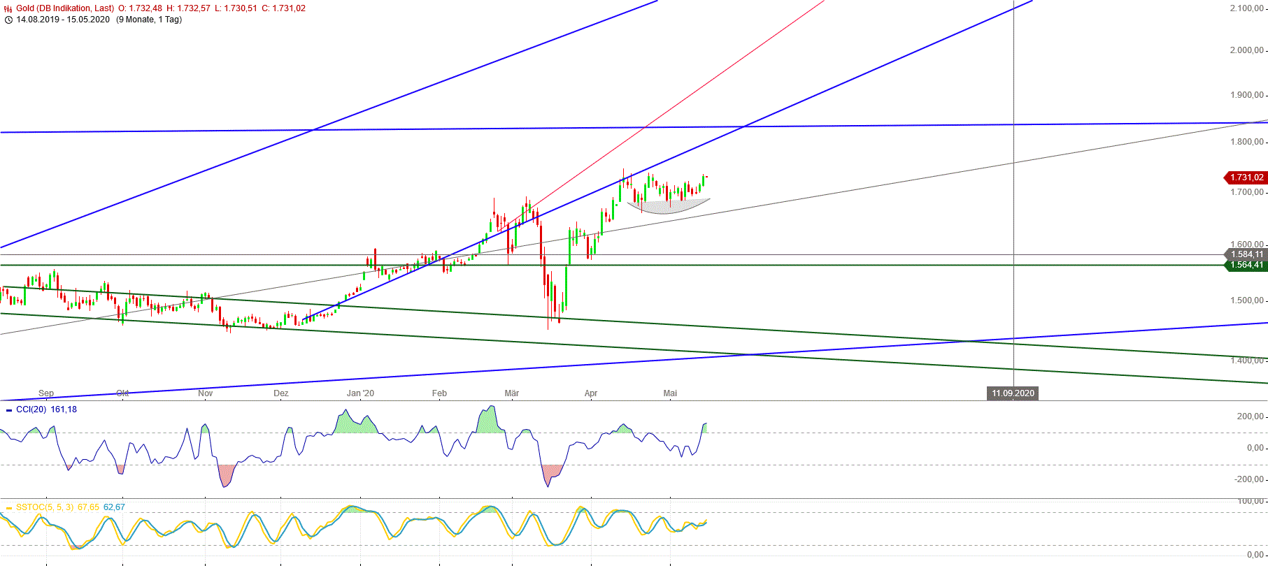 Meine Beobachtung betr. Gold : Wenn der MonD im Fisch über das Sextil zu PLuto im Stbk geht, knickt der Goldpreis ein. Das wäre in der Nacht von Sa auf So. Also Vorwegnahme auf heute war meine Spekulation, oder Mo früh. Bitte berücksichtige,daß ich Astro mit Technik nicht vermischen möchte !