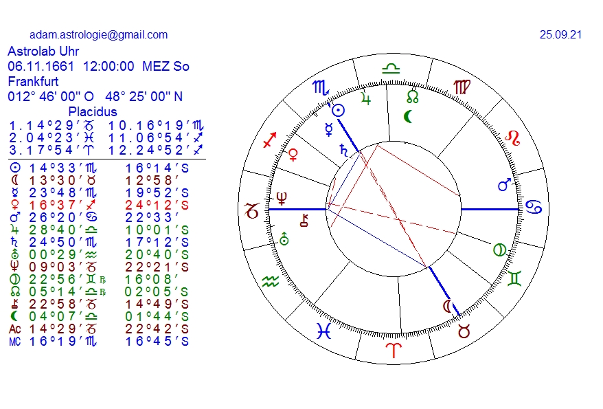 Geburtsdatum 06.11.1661, wir suchen die Grundschwingungszahl und wandeln das geburtsdatum 6.66.6666=42=6 = Mars