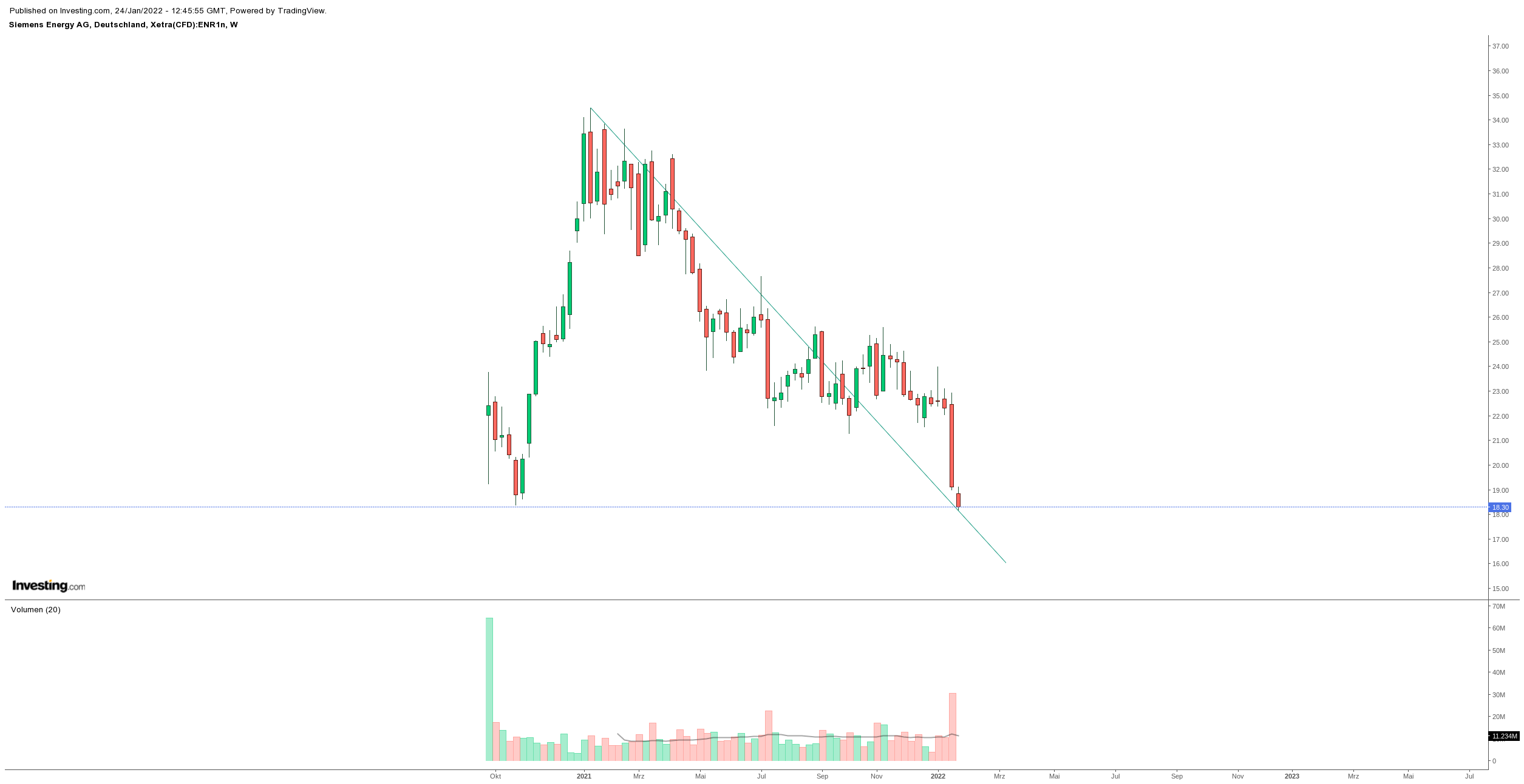 im Jahreschart ist gut zu erkennen, warum Aktie an bei ca. 30,93 US $ scheiterte.
