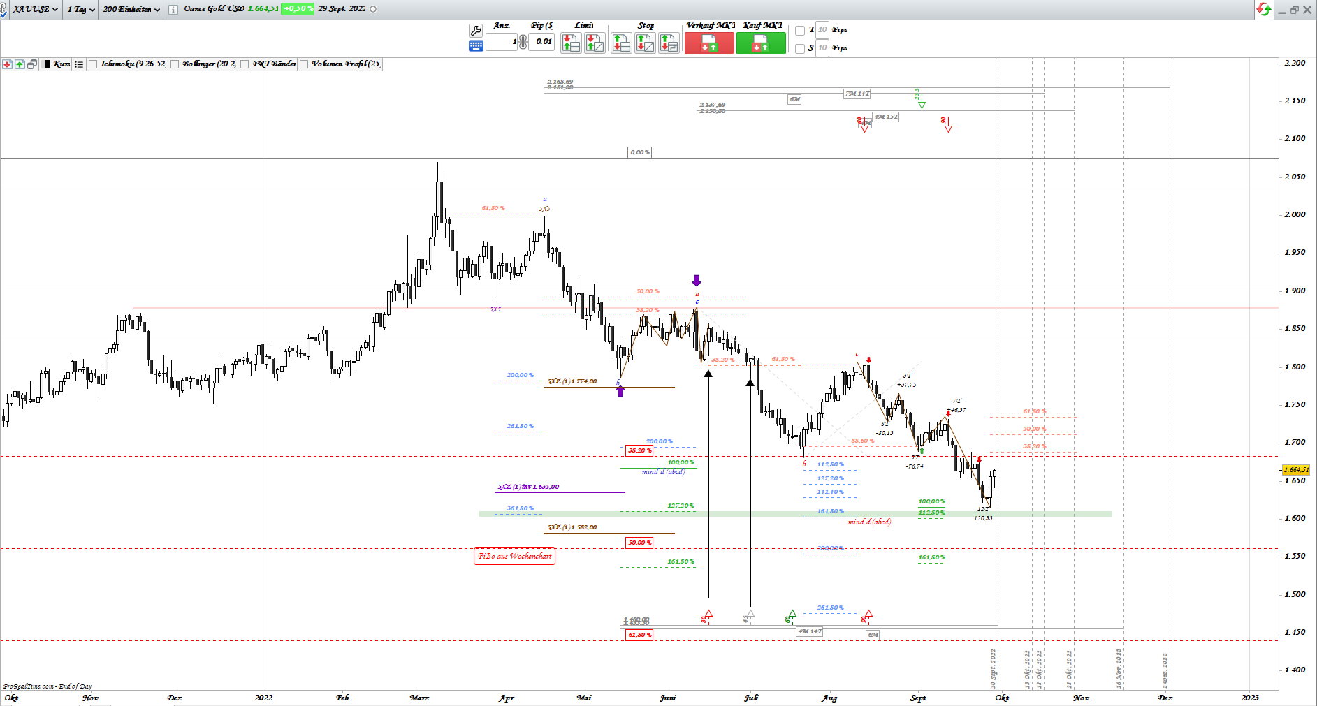 Derzeit wurden "Zeit" Signale (im Chart mit Pfeilen markiert) exakt getroffen.