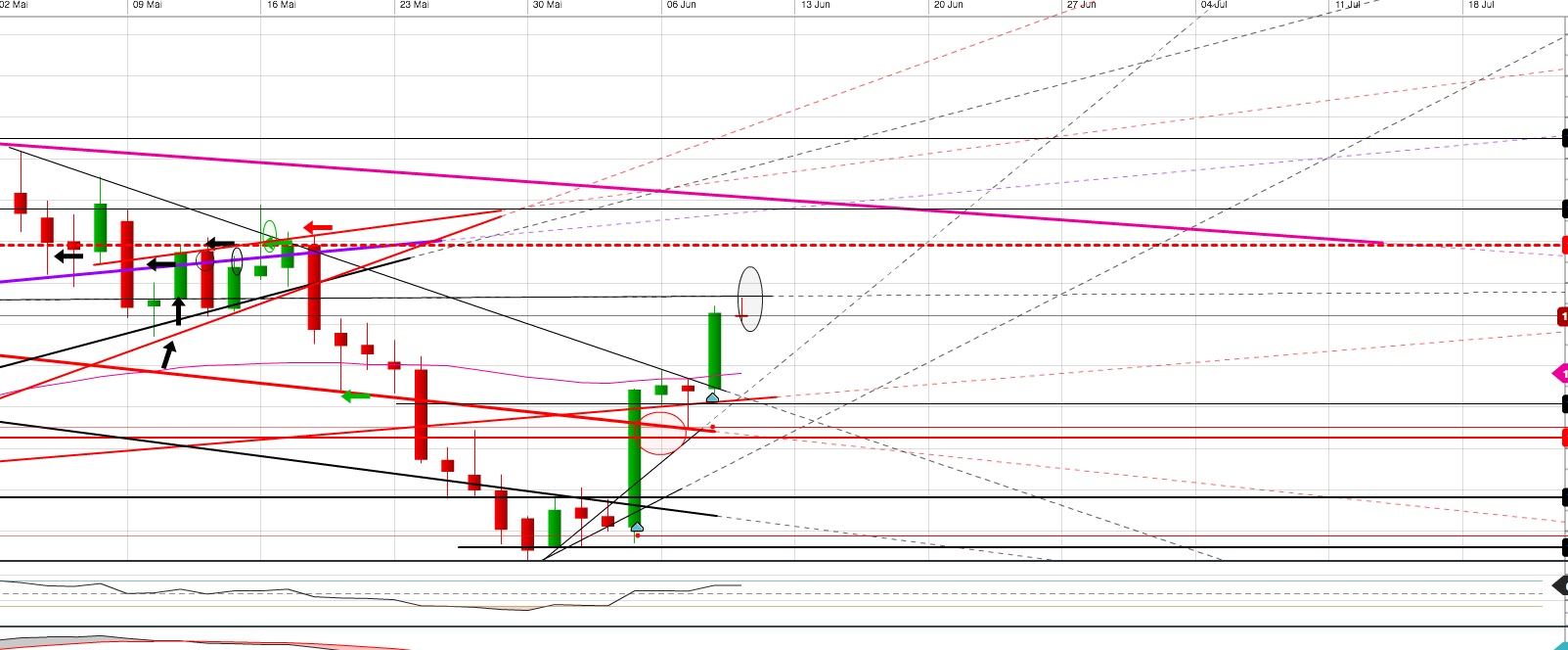 Könnte sich morgens ein Call, am Abend ein Put für Freitag lohnen. Dann ein Call im Hinblick auf den 16. bzw 17. mittags. Dann ein Put für den 20. . Der 21. sieht wieder besser aus, der 22. nicht. Im Hintergrund wirkt dann immer mehr das Trigon Jupiters zu Pluto, was sehr positiv ist. ( spanienwahl genau) . Juli gut !