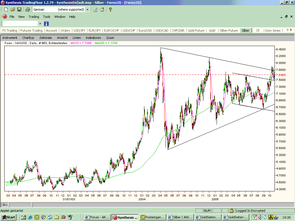 Auch die Verkäufe der Zentralbanken sollten nicht sorgen. Von der für 2005 ins Auge gefassten Menge von 500 bis 550 Tonnen sind nach ersten Schätzungen bereits 250 Tonnen im ersten Quartal verkauft worden. Das nimmt für den Rest des Jahres beträchtlichen Druck von den Preisen. Man sollte zudem bedenken, dass der Markt ohne diese Verkäufe gar nicht mehr funktionieren würde. Denn die Bergbauförderung des Edelmetalls ist seit Jahren rückläufig und sackte 2004 mit 2 464 Tonnen auf den niedrigsten Stand seit acht Jahren.