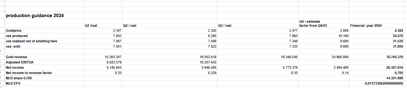 Mein Preisziel wenn Dividende (0,005€) und Produktion (35K unzen) gehalten werden für 01.04.2025 - 0,2€