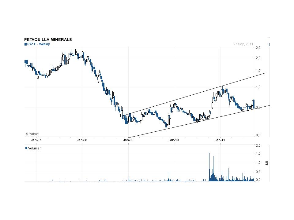 PTQMF gained 4.57%, to close at $0.693 and its overall traded volume was 116,692.00 shares in the last trading session. PTQMF opened at $0.71 and is trading within the range of $0.67-$0.71. The 52-week range of the stock is $0.38 – $1.38. PTQMF’s market capitalization is $122.11M and it has 176.21M outstanding shares. Petaquilla Minerals Ltd. (Petaquilla) is engaged in the mining and mineral exploration of gold-bearing mineral properties in Panama. The Company has 12 subsidiaries and one joint venture interest, including Adrian Resources (BVI) Ltd., Petaquilla Minerals, S. A, Petaquilla Gold, S. A., Instituto Petaquilla, S. A., Brigadas Verdes, S. A., Compania Minera Belencillo, S. A., Petaquilla Infraestructura, S. A., Aqua Azure, S. A., Panamanian Development and Infrastructure Ltd., Petaquilla Infraestructura Ltd., Panama Desarollo de Infraestructuras, S. A., Petaquilla Security, S. A. and Panama Central Electrica, S. A. The Company is engaged in the acquisition, exploration, exploration m anagement and sale of mineral properties. The Company’s primary focus is the production of gold from its open pit mine at its Molejon gold project, as well as the exploration of a number of its adjacent mineral concessions in the Republic of Panama.