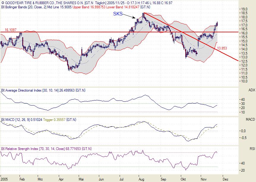 Enorm starke Zahlen von Goodyear - die neue Strategie mit Ausrichtung auf margenstarke Produkte beginnt zu greifen. Charttechnisch geht`s zurück zu alten Höchstständen !