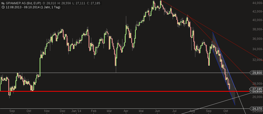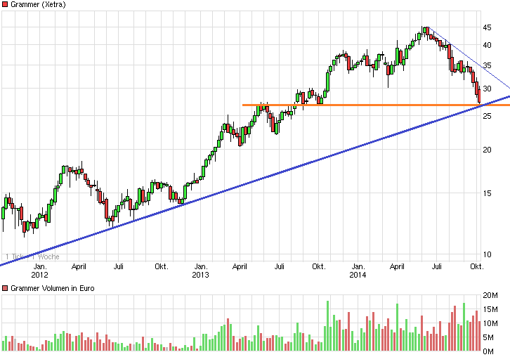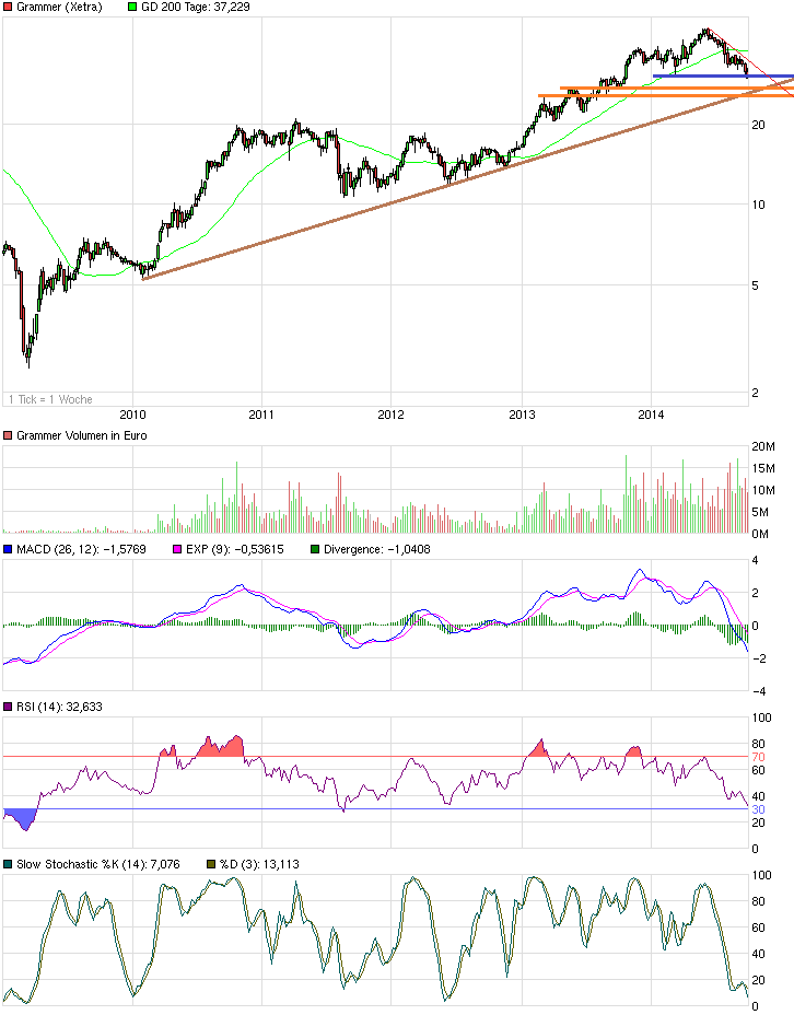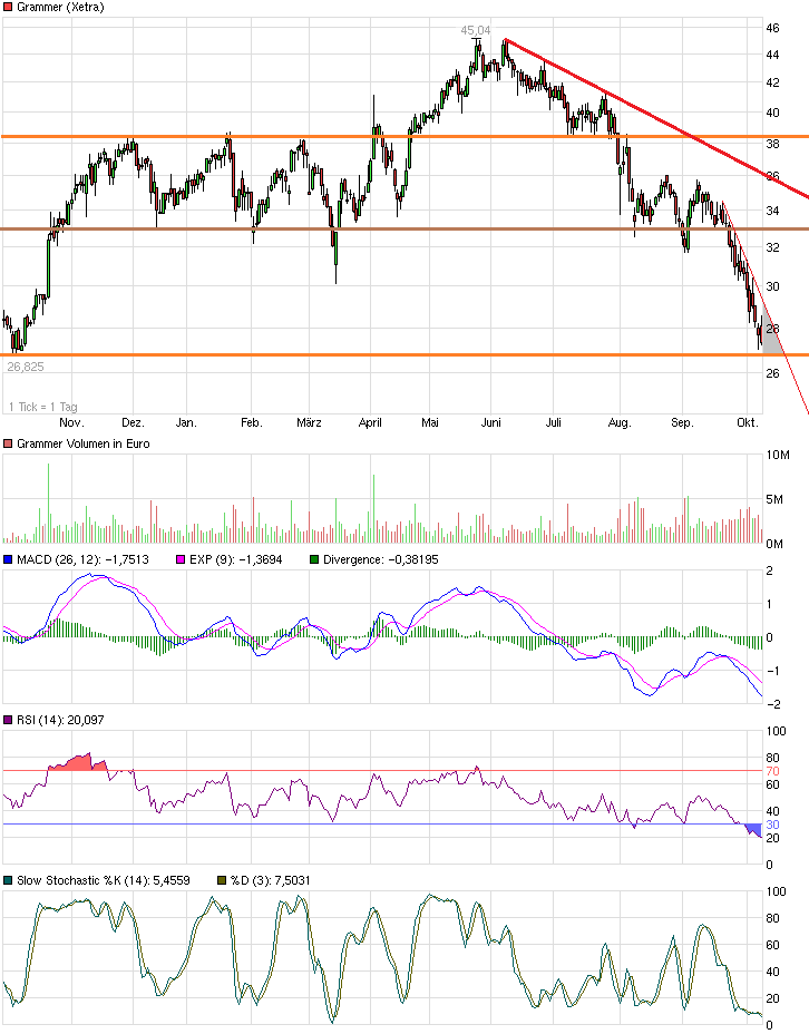 Hab heut übrigens NOCHMAL nachgekauft, zu 30,70. Das war jetzt aber wirklich das letzte Mal, das sag ich hier ganz deutlich. Erste Posi zu 34,80 - und dann immer im Abstand von ca. 1 EUR nachgekauft. Bin's jetzt aber leid! DREI Unterstützungslinien durchbrochen! Das kann nich wahr sein! Wo soll das bitteschön hinführen, hä? Und die nächste Unterstützung erst wieder bei 27,50? Also nochmal 10% runter? Das ist doch wohl ein Witz, oder? Das sind für mich unhaltbare Zustände und ich frage mich, wie lange die Politik hier noch zuschauen will! Der Staat hat für Gerechtigkeit UND SICHERHEIT zu sorgen! Wo bleibt hier die Sicherheit, wenn die Kurse einfach weiter und weiter abrutschen und keine Unterstützung hält? Hier müssen dringend Regelungen her! Dringend!