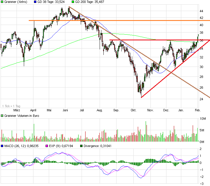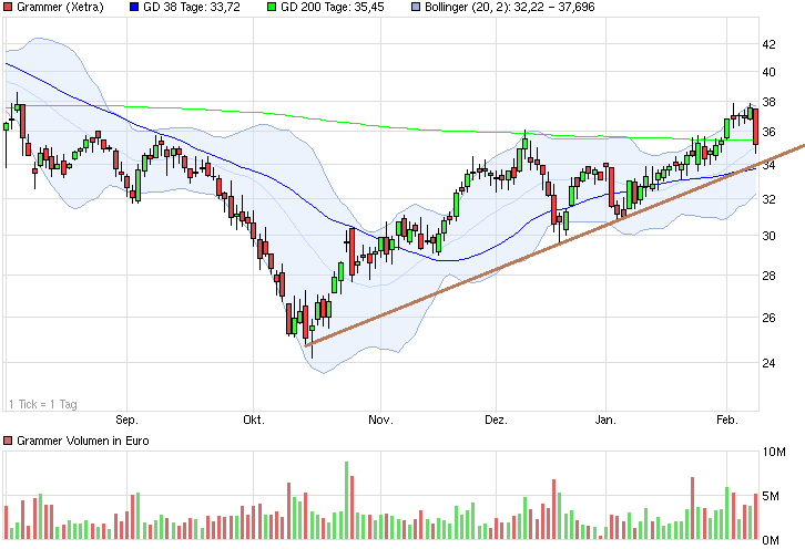 Charttechnisch hat man jetzt die 34 € Marke gerissen. Eigentlich ein prozyklisches Verkaufssignal, aber wie gesagt, die Aktie reagiert eigentlich selten so wie es die Tradingregeln verlangen. Mal noch andere Meinungen einholen. Aktuell würd ich sagen, fundamental und technisch bei 30-31 € wieder zukaufen.