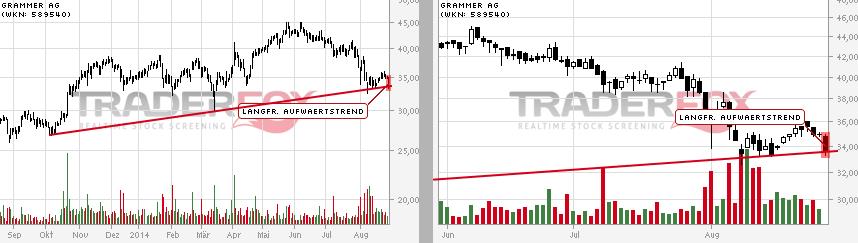 Und auch keine offiziellen Zahlen.. Unterhalte mich aber ab und an mit paar guten Freunden,die beruflich Aktien sehr nähe sind, und ich glaube auch, mittlerweile selbst ein Gefühl für Marktsituationen entwickelt zu haben. Und hier sagt es mir, dass bei Kursen um 45 Euro erstmal viele mit größeren Gewinnen aus dem letzten Jahr ausgestiegen sind. Und einige Shorties treiben bei Branchenwerten wie Grammer jetzt die Kurse weiter 'gen Süden.. Das klappt auch immer bis zu einem gewissen Punkt und führt im Extremfall zu Kursen, die bis zu 50-60 Prozent vom halbwegs fairen Wert einer Aktie abweichen können.. Tja-und dann wendet sich plötzlich das Blatt und es kommt zu einer stärkeren Gegenbewegung oder auch nur zu einer technischen Gegenreaktion, die noch verstärkt wird, wenn der Markt insgesamt steigt. Aber das weißt Du sicher alles selber. Ich jedenfalls spekuliere jetzt darauf.. Muss aber jeder selber wissen,wie er das einschätzt.. Soll also keine Empfehlung für andere sein.. Wünsche noch einen schönen Abend..