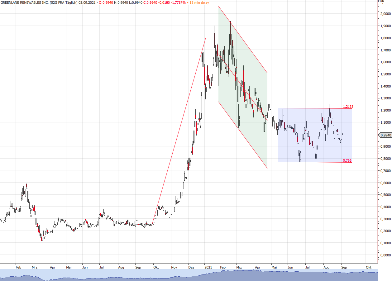 nun melde ich mich wieder zu Wort, der schon im Frühjahr 2020 zu 0,25€ seine erste Position in Greenlane gemacht hat. Richtung Neujahr haben wir im grünen Sektor eine sehr große Rallye gesehen und danach wurde der Sektor abverkauft. Und so schaut auch die aktuelle Lage bei vielen grünen Aktien aus. Sie sind noch mitten in der Konsolidierungsphase. Ich kann mir vorstellen, dass der grüne Sektor Richtung Winter und Frühjahr des kommenden Jahres wieder anspringen wird und zumindest neue Höchststände angetastet werden. Ich stelle mich aber auch darauf ein, dass durch das (bald) startende Tapering der Notenbanken - und der folglich steigenden Zinsen Technik-Aktien sensibel reagieren könnten. Wie dem auch sei - langfristig sehe ich hier sehr große Möglichkeiten und auch die Möglichkeit, dass Greenlane von einem großen Fisch gekauft wird. Anders als beim Wasserstoff-Sektor, ist Greenlane bald dabei den Break-Even zu schaffen. Bei den Q2-Zahlen entfällt das "-" zu einem großen Teil auf Währungsverluste! Schritt für schritt wird es besser und ich bin gespannt und froh, dass ich die Reise mit einem kleinen Unternehmen gehen kann. Aktuell halte ich die Bewertung als Fair bis leicht unterbewertet (Market Cap 230 Mio. CAD bei Umsatz estimated for 2021 40Mio. CAD.) das ist fast der 6-fache Jahresumsatz. Ich bin mir sicher, dass wir spätestens im Jahr 2022 profitabel sind. Ab diesem Zeitpunkt sollte auch eine deutlich höhere Bewertung möglich sein. Diese könnte schon innerhalb von drei Jahren eine Marktkapitalisierung von 1 Milliarde CAD haben. Das wären dann ca. 5,00 CAD oder 3,40€ pro Aktie. Aber wie die Börse so ist, ist sie immer für eine Überraschung gut. Ich könnte mir ebenfalls einen erneuten Hype der grünen Aktien vorstellen oder auch einen Hype speziell unserer Aktie. Solche Hypes können schnell mal mehrere 100% zur Folge haben. Ich bleib gespannt und halte. Sofern der Kurs noch einmal die Richtung 0,75-0,80 €antasten sollte, werde ich noch ein bisschen zukaufen.