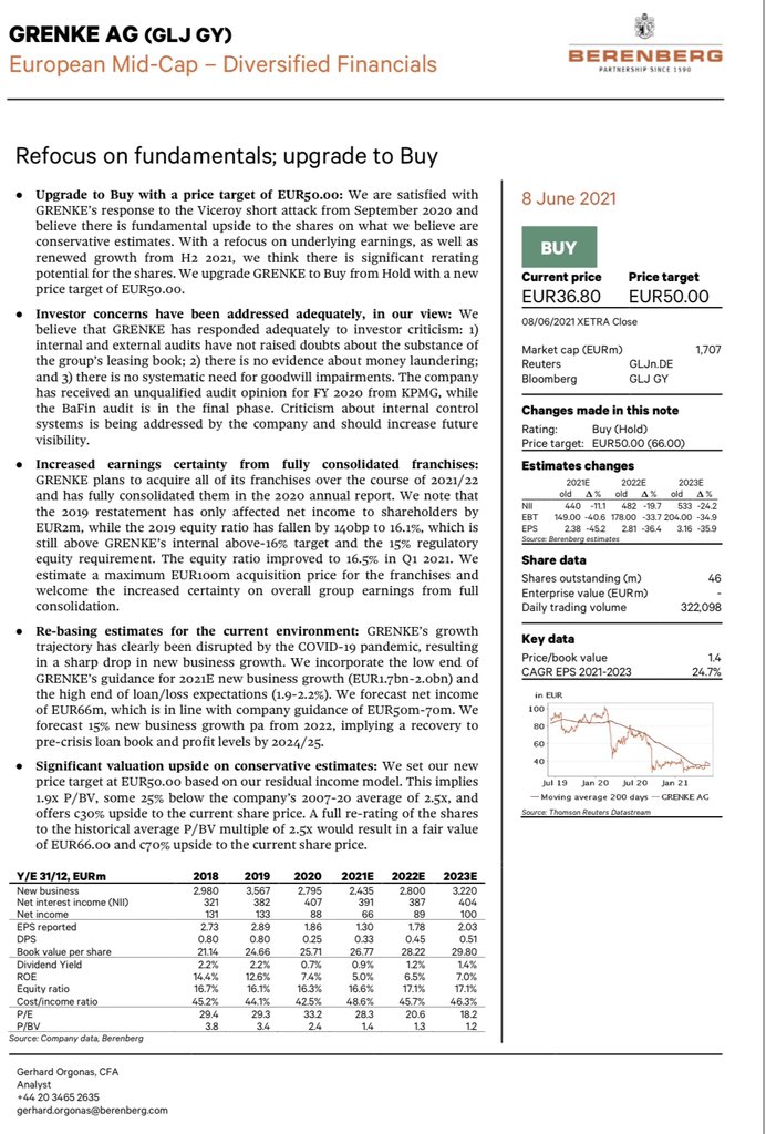 Grenke ist ein gesundes Unternehmen, wurde von allen Seiten in der Zeit nach Wirecard bis ins Detail durchleuchtet und hat keine faulen Eier.
