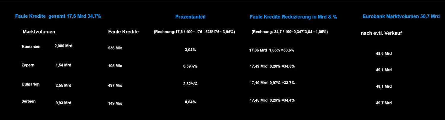 Die vielen news die alle und voralllem Jonny zusammen tragen sind toll. Allerdings bekommen die kleinen Anleger solche Infos immer zu spät und/oder der Inhalt der Nachrichten wird überbewertet. Die Fakten sind denke ich klar : nlps müssen runter, das Problem der latententen steuern ist ungeklärt und die Hohe Staatsbeteiligung bei vielen gr Banken ist mmn auch nicht die Lösung für alle Zeiten, vorallem weil überall privatisiert wird.