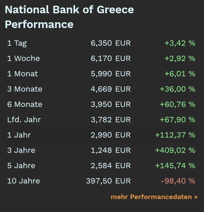 ... und der Investmentgrade für Griechenland und die Banken könnte in wenigen Wochen/Monaten kommen. Dies würde die Zinskosten sowohl für GR als auch die Banken um einiges verringern und dementsprechend die Bankgewinne nochmals steigern.