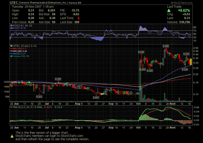 NEW YORK, Nov. 20, 2007 (PRIME NEWSWIRE) -- The following is being issued by Genesis Pharmaceuticals Enterprises, Inc. (OTCBB:GTEC):