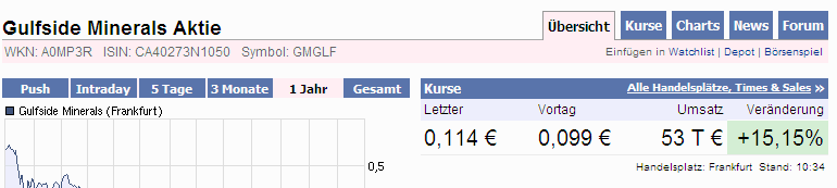 So oder so: Gulfside steht nun nur noch mit einem Gebiet da, das im Gegensatz zu Erdenetsogt noch nicht über einen NI-konformen Ressourcennachweis verfügt. Immerhin entspricht der Sharepreis eher diesen Gegebenheiten.