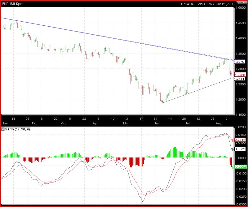 Der Kurs ist eingebrochen und hier geht man weiter Short. Nächste Woche nehmen wir dann wieder Kurs auf die 1.40 und alles wird sich wundern.