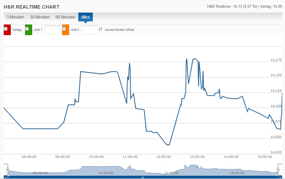"Auf 23,00 Euro hat die Baader Bank das Kursziel für die Aktien von H&R festgezurrt. Das heißt, bei einer derzeitigen Notiz von [12,20] Euro traut man dem Chemieunternehmen einen Anstieg von [88] Prozent zu.