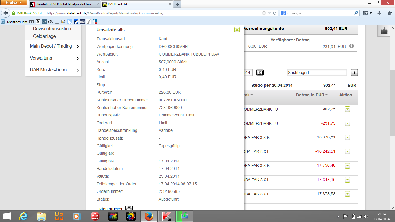 | Steigender DAX-Kurs | 5,00 | 9,98 | 15,00 | |