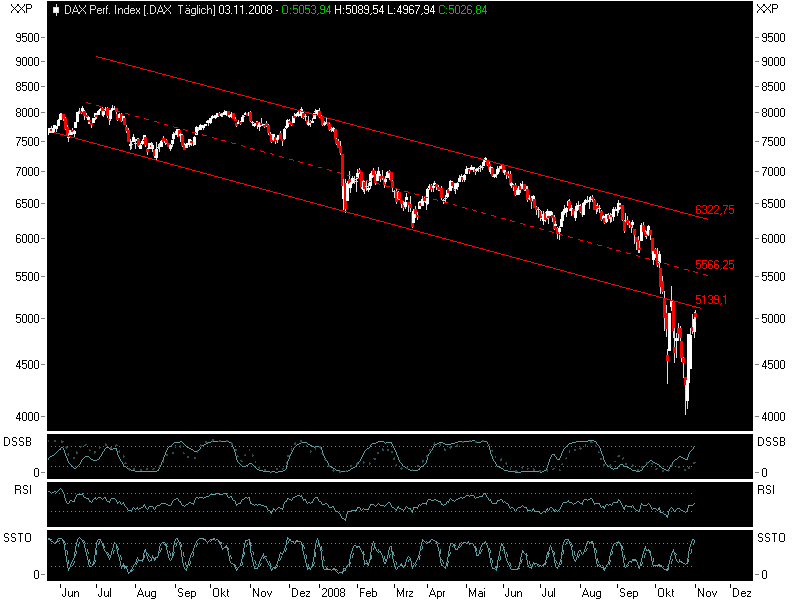 raus, immerhin kein Verlust aber ich weiß nicht worauf man die nächsten Tage spekulieren soll, ich bin wirklich etwas ratlos. Manche meinen es geht noch über 5800, andere sagen wir sehen die 4000 noch diese Woche. Naja, ich bin da etwas ratlos wiew sich die Börsen entwickeln. Mein Bauchgefühl sagt es geht eher weiter hoch, die Fundamentaldaten sprechen allerdings eine andere Sprache. Naja, besser man geht über die Nacht erstmal aus seinen Produkten raus, wer weiß was da noch kommt... das der Nikkei so im Plus liegt wundert mich übrigens nicht, die haben doch heute Nacht noch garnicht gehandelt und müssen noch die Lursgewinne vom Freitag nachziehen... aber ob die das Plus halten... ich glaube es eher nicht.