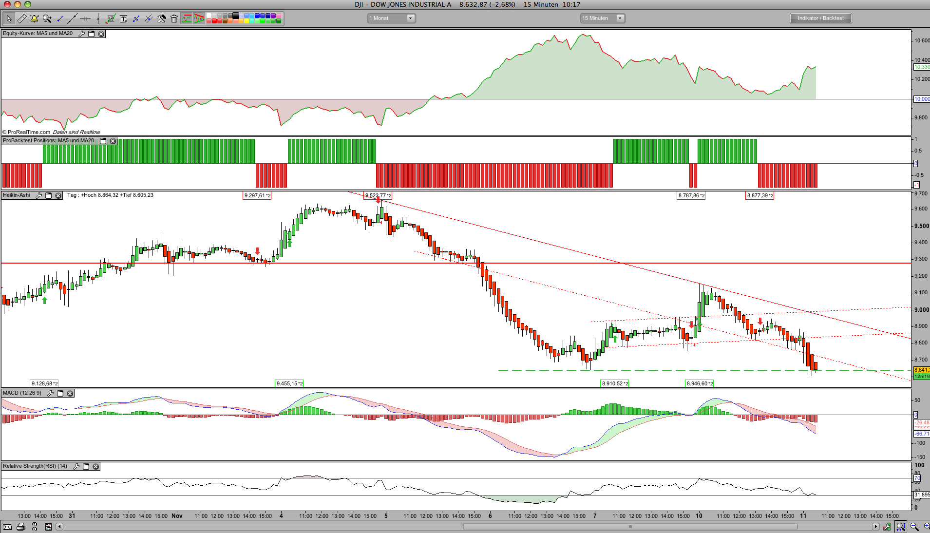 Wollte eigentlich vor 15h schreiben: Der Dow entscheidet sich heute für einen Trend.