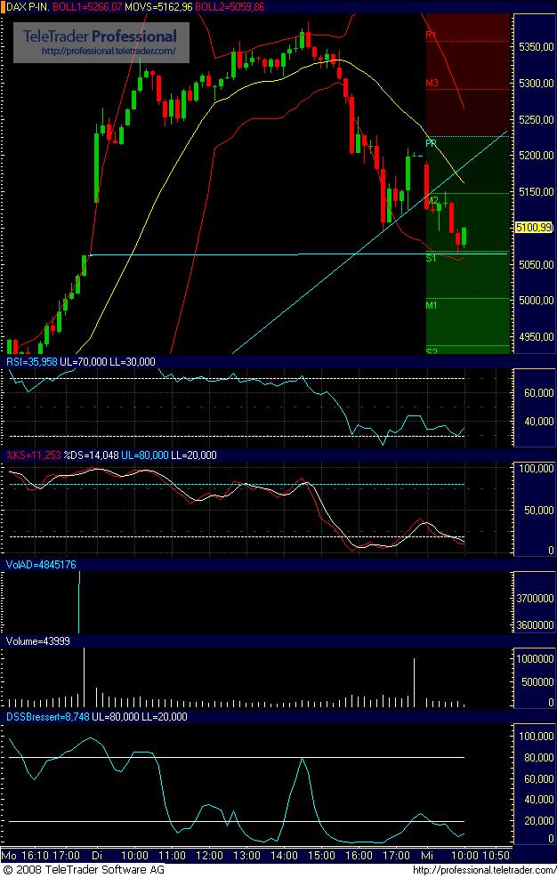 Mit eher pessimistischer Tendenz. Ich sehen sehe jetzt im Chart schon ein grosses steiles schiefes M. Und wahrscheinlich noch mehrere davon,wie gestern der Dow.