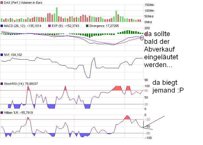für heute glaube ich allerdings an steigende Kurse, da seit dem letzten Abwärtsmove 3 Tage vergangen sind, d.h. die Shorter müssen ihre Positionen glattstellen. (dies ist nur meine persönliche Meinung, mit betrachtung der letzten paar überdimensionalen Downmoves.)