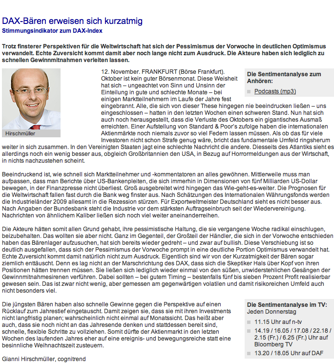 Dann schau mal bitte aufs die Marktstimmung bei Cognitrend! Dann siehst du, das die Markteilnehmer positiv eingestellt sind!