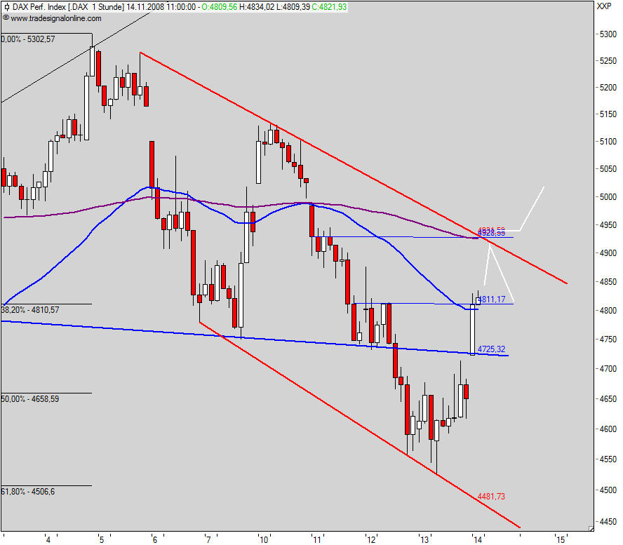 Ein kurzer Rücksetzer wäre zwar denkbar, allerdings glaube ich nicht das die Emmis sich es nehmen lassen die nicht nur nachbörlich schon ausgeknockten KOs sondern auch noch vielleicht die bis 5000 abräumen und dann erst einen Rücksetzer wagen. Aber wie gesagt, ich muss ehrlich passen für Heute sorry.