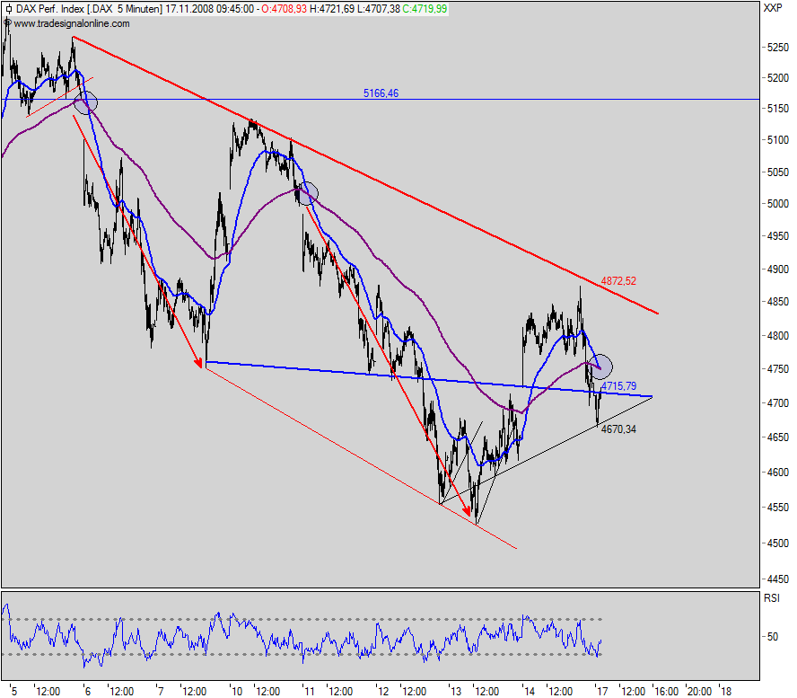 Tendenz - Erholungsversuche werden versanden - keine echten Käufer im Lande. Vorbörslich minus 48 Punkte.