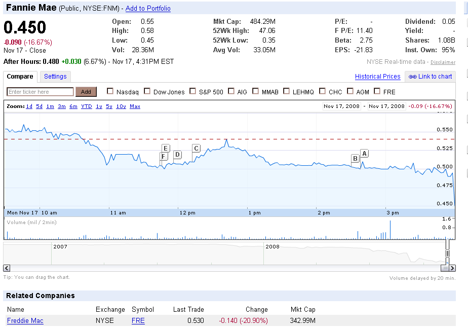 Wenn das beide male dieselbe Aktie sein sollte. Schade, dass ich nicht weiß, wo ich bei NYSE jetzt noch welche davon herbekomme :) Dann würd ich mir mal ein paar zugtausend zulegen und die woanders gleich für 40 Cent wieder verticken :)