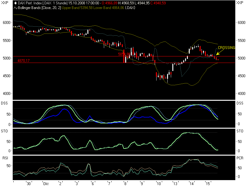 Kurz-Kommentierung: Der DAX sollte nach einem frühen Hoch bei ~5.200 fallen und den gestern begonnenen Pullback fortsetzen. Da 5.062 (=Gap) bzw. 5.000 (runde Zahl) nicht ausreichend Halt boten, zieht der DAX nun direkt zu einer wichtigen Unterstützung bei 4.870. Bei 4.870 bestehen recht gute Chancen, dass der DAX zumindest einige Stunden nach oben abprallt, z.B. bis 5.100 oder 5.200. Ob sich daraus bereits das erwartete 2. große Rallyestandbein bis 5.400 (bzw. 5.750) ergibt kann noch nicht abgeleitet werden. Zu achten ist auf jeden Fall auf folgendes: Ein Rückfall unter 4.850 wäre kritisch. Ein Rückfall unter 4.600 wäre klar bärisch.